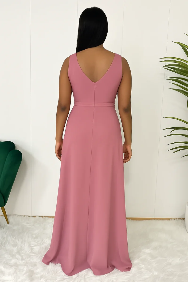 La coupe évasée et fluide met en valeur toutes les morphologies, et assure confort et légèreté tout au long de la soirée. Le dos en V ajoute une note de sensualité raffinée sans excès.