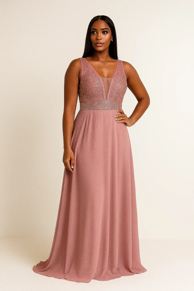Brillez avec cette somptueuse robe de soirée longue mauve, idéale pour vos mariages, galas, fiançailles ou grandes occasions. Son haut pailleté travaillé avec des détails scintillants apporte une touche glamour, tandis que son décolleté en V avec tulle discret sublime le buste avec élégance.