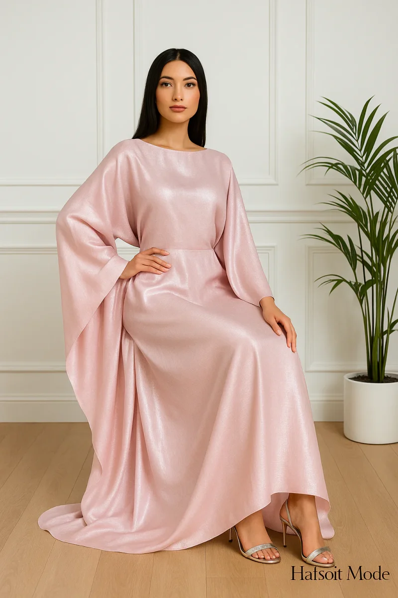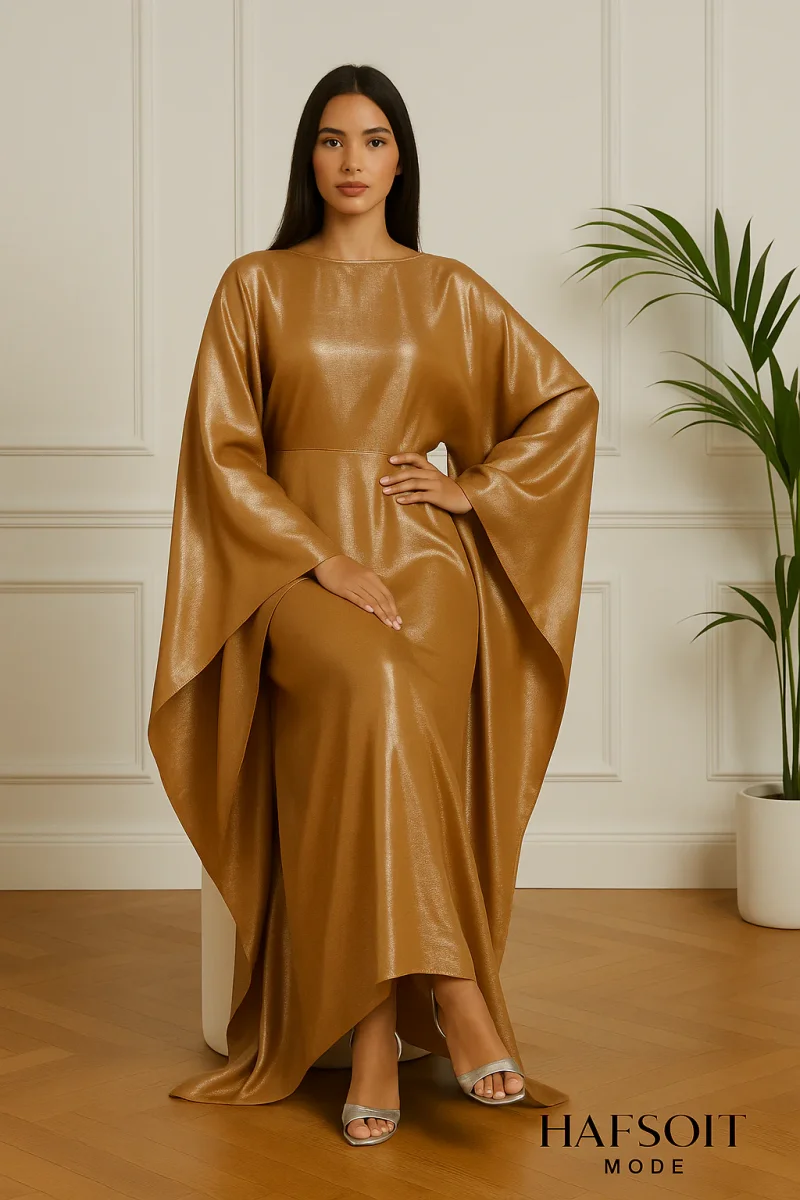 ✨ Abaya papillon longue métallisée fluide – Hafsoit Mode