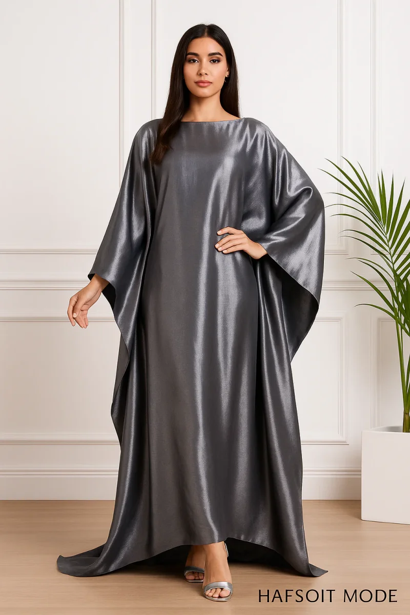 Abaya papillon longue métallisée fluide – Hafsoit Mode