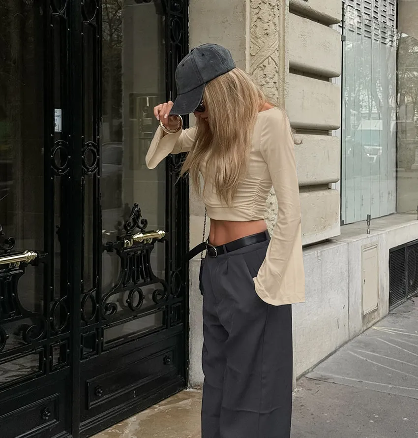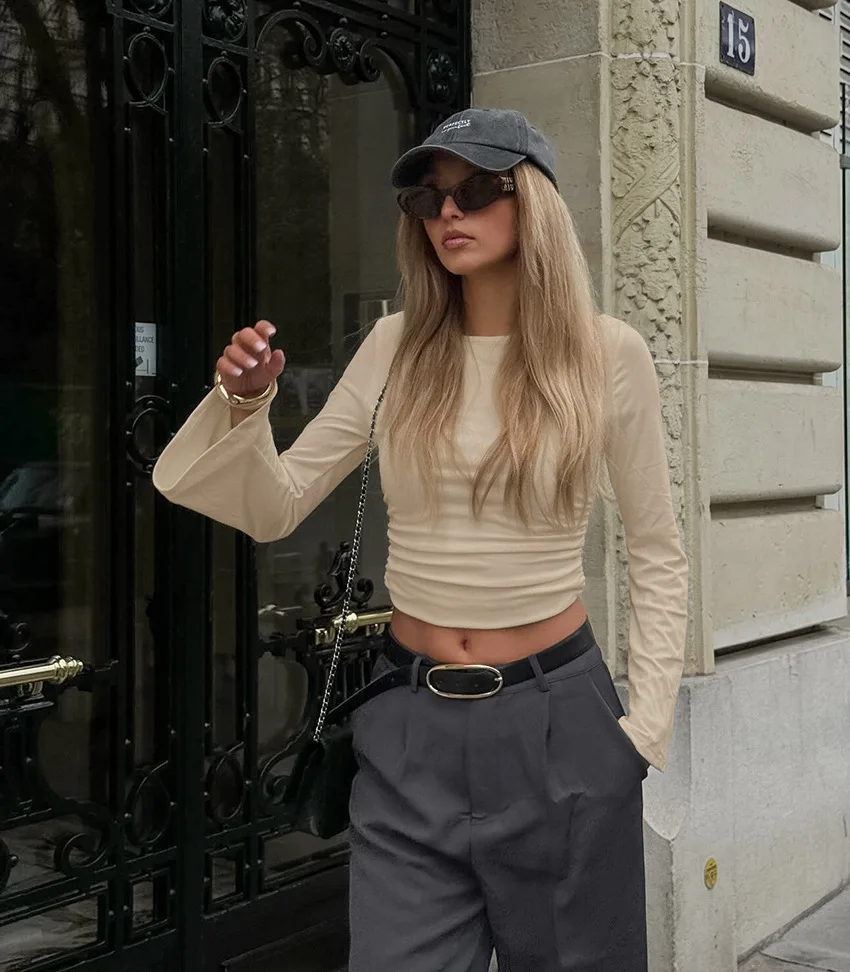 Porté avec un pantalon large ou une jupe, le top ALYA™ s’adapte à toutes vos envies. Conçu pour durer, son tissu extensible conserve sa forme et son toucher soyeux lavage après lavage, vous garantissant un look impeccable du matin au soir. (Insérer Visuel 3 : Zoom sur les détails froncés et la matière)