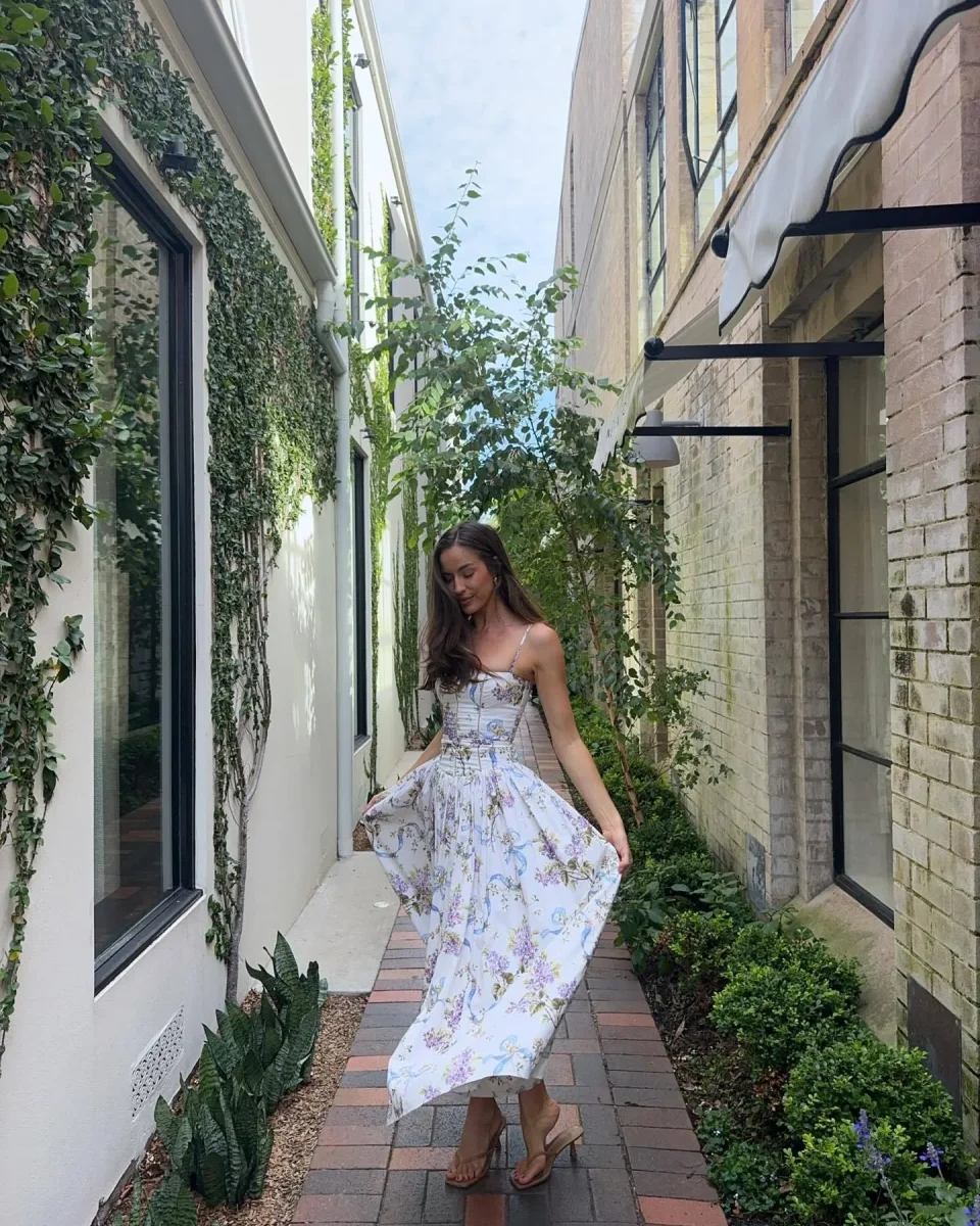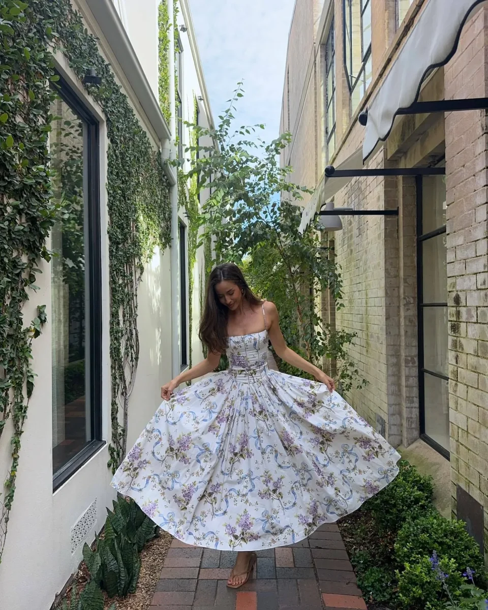 Amoria™ – Robe Fleurie à Bretelles & Taille Cintrée