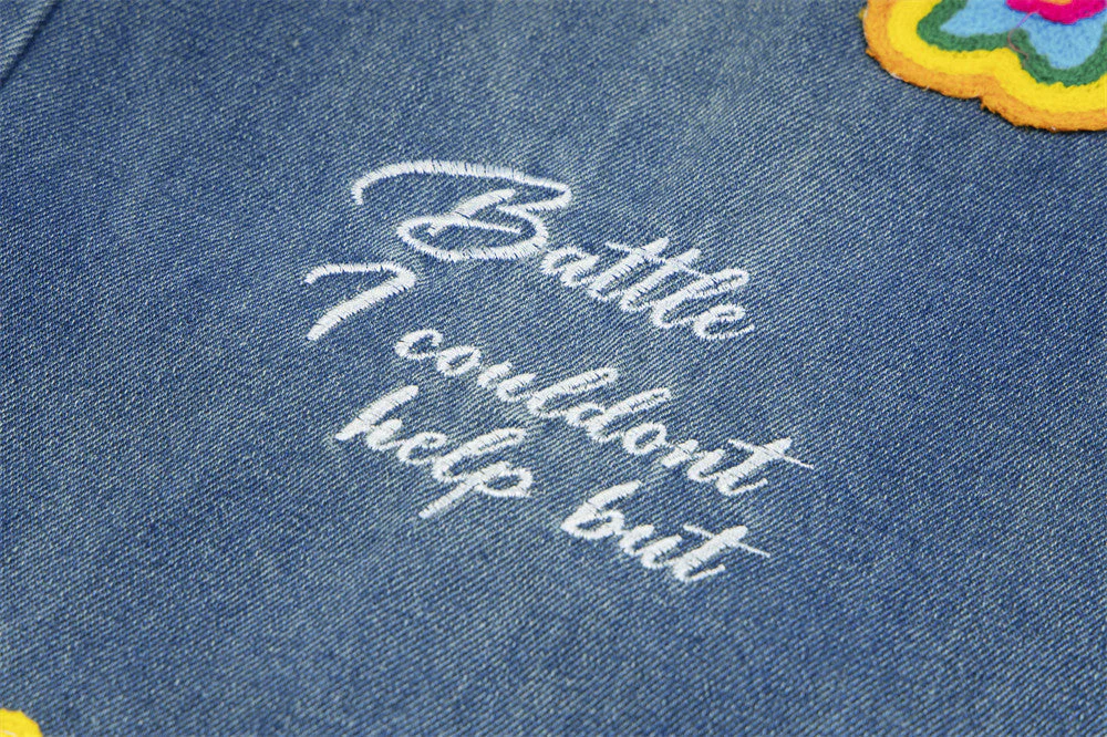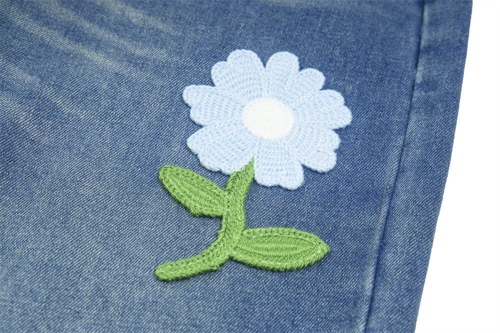 Anna™ | Pantalon en jean délavé à jambe large avec broderie florale à rayures