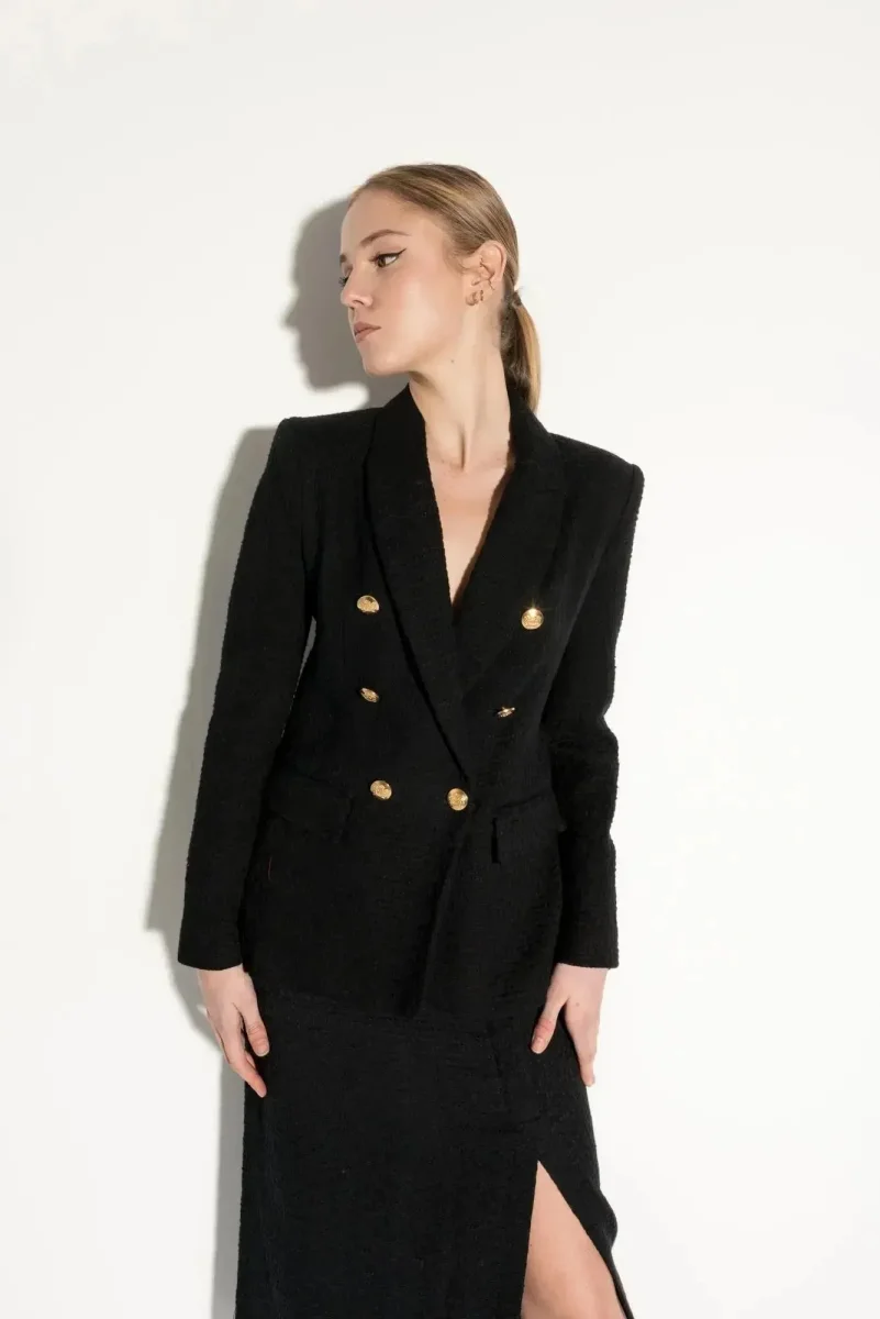 Blazer Chic Femme Noir À Boutons Argentés – Élégance, Confort Et Style Intemporel