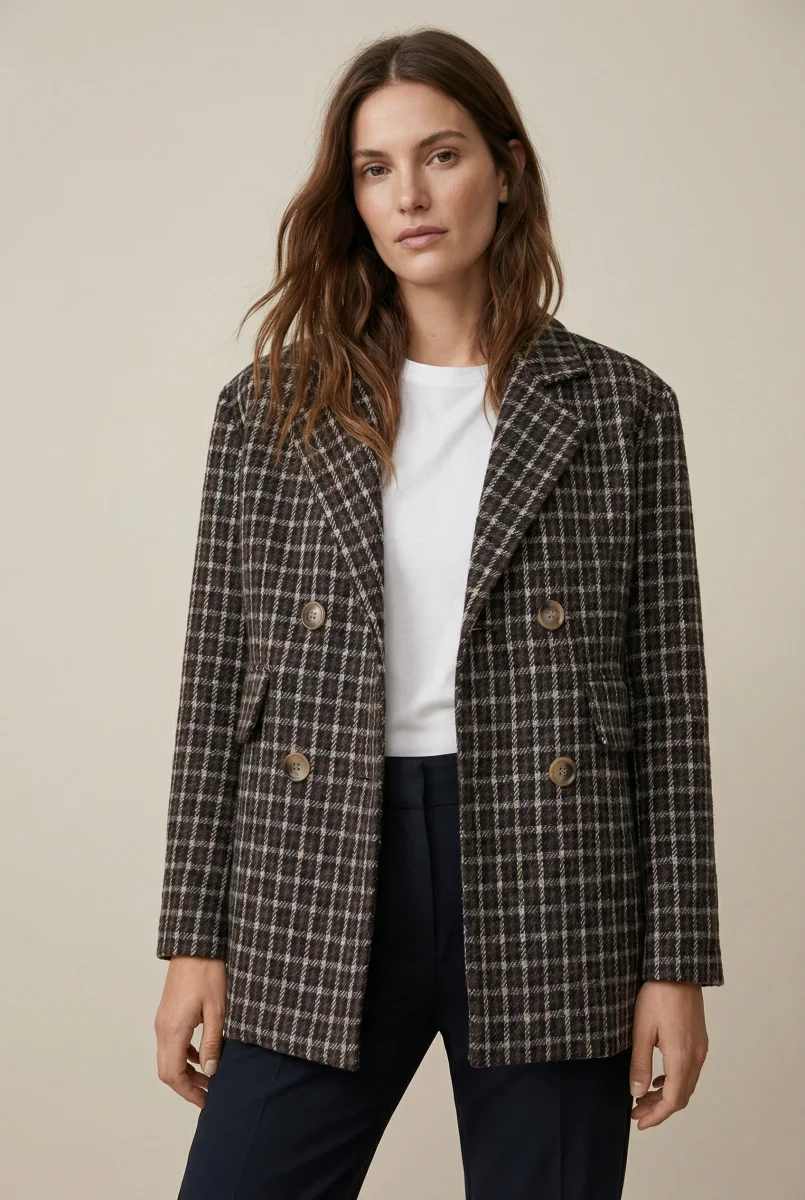 Ce blazer femme en coton structuré est pensé pour offrir une silhouette nette, élégante et facile à porter au quotidien. Sa coupe équilibrée convient aussi bien aux tenues de bureau qu’aux occasions plus formelles, sans rigidité excessive.