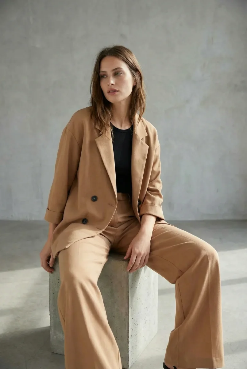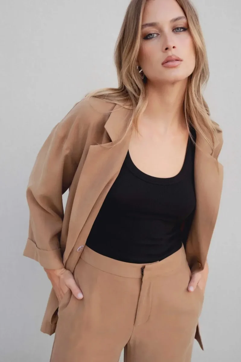 Découvrez notre blazer fluide camel pour femme