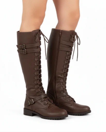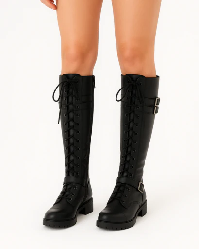 Ces bottes hautes pour femme apportent une allure élégante et affirmée avec leur inspiration cavalier. Le laçage sur l’avant crée un look structuré, tandis que la fermeture zippée sur le côté facilite l’enfilage au quotidien. Les boucles ajoutent une touche mode et permettent un ajustement visuel harmonieux. Idéales avec une robe, une jupe ou un jean, elles complètent facilement une tenue de ville chic en saison fraîche.