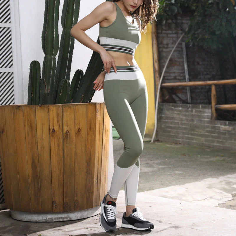 Conçu pour les femmes actives, cet ensemble de 2 pièces comprend un top court sans armatures, qui épouse parfaitement votre silhouette, et des leggings taille haute, offrant un maintien idéal pendant vos séances de yoga ou de fitness.