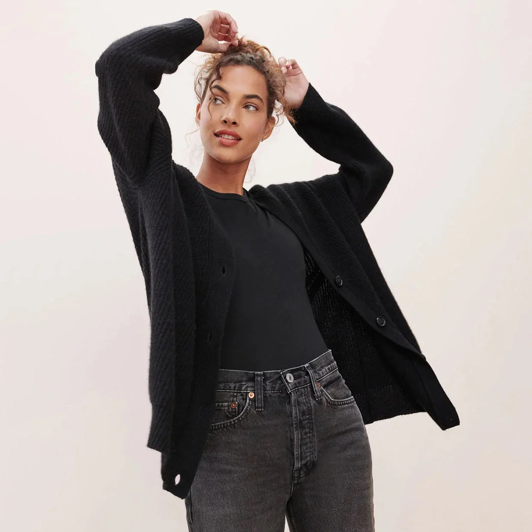 Le cachemire est doux et moelleux, et la coupe est surdimensionnée et flatteuse.