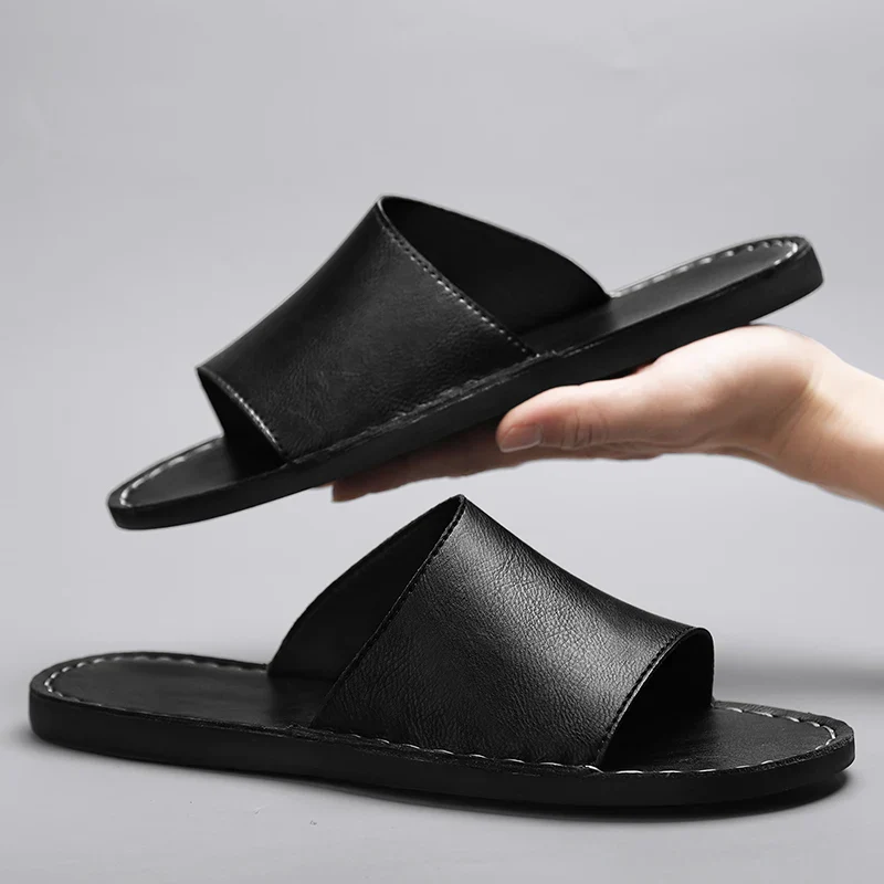 Chaussons croisés en cuir véritable pour hommes