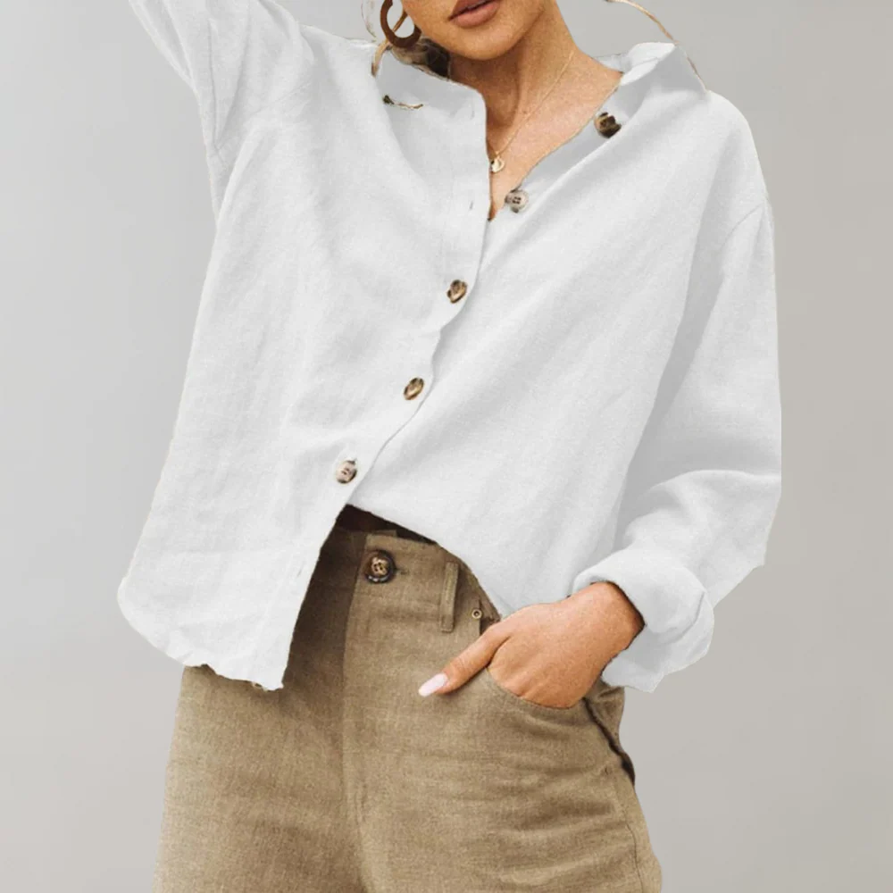 Chemisier aspect lin pour femme avec fermeture boutonnée – Simple, élégant et confortable !