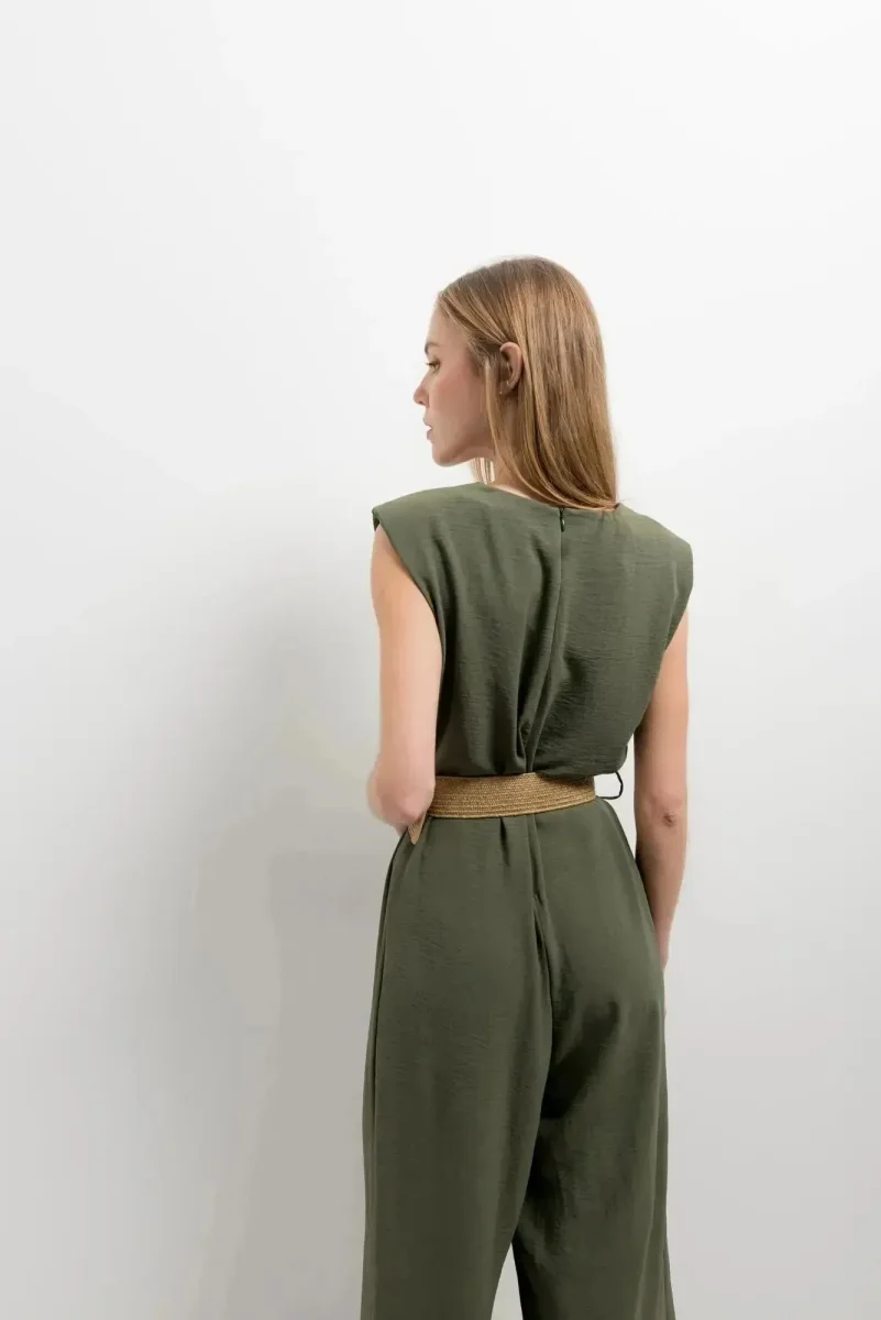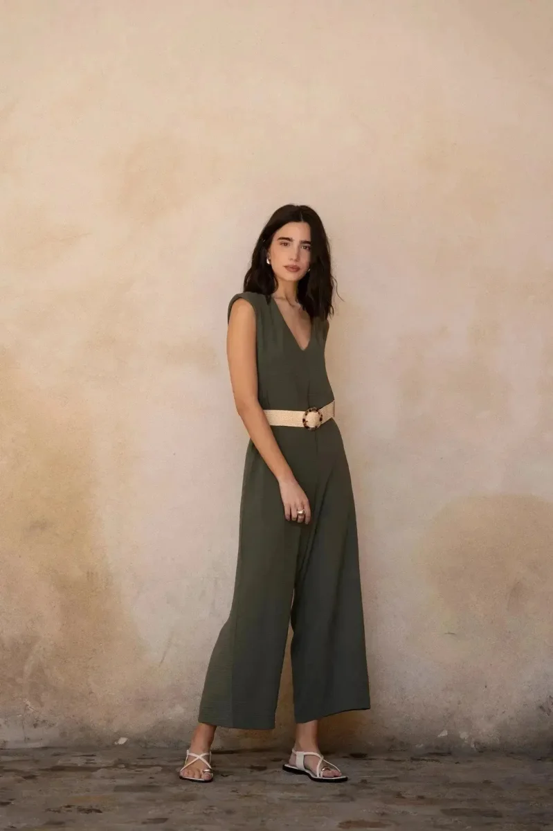 Fabriquée avec soin par Sapiato, cette combinaison est idéale pour les femmes qui recherchent une allure chic sans compromettre leur confort. Conçue dans une nuance d’olive apaisante, elle s’accorde facilement avec divers accessoires et chaussures. Optez pour des talons pour un look habillé ou des sandales pour une touche plus décontractée.