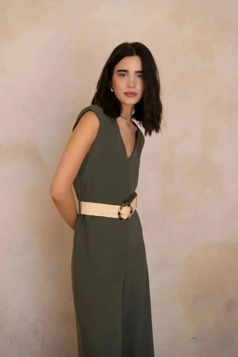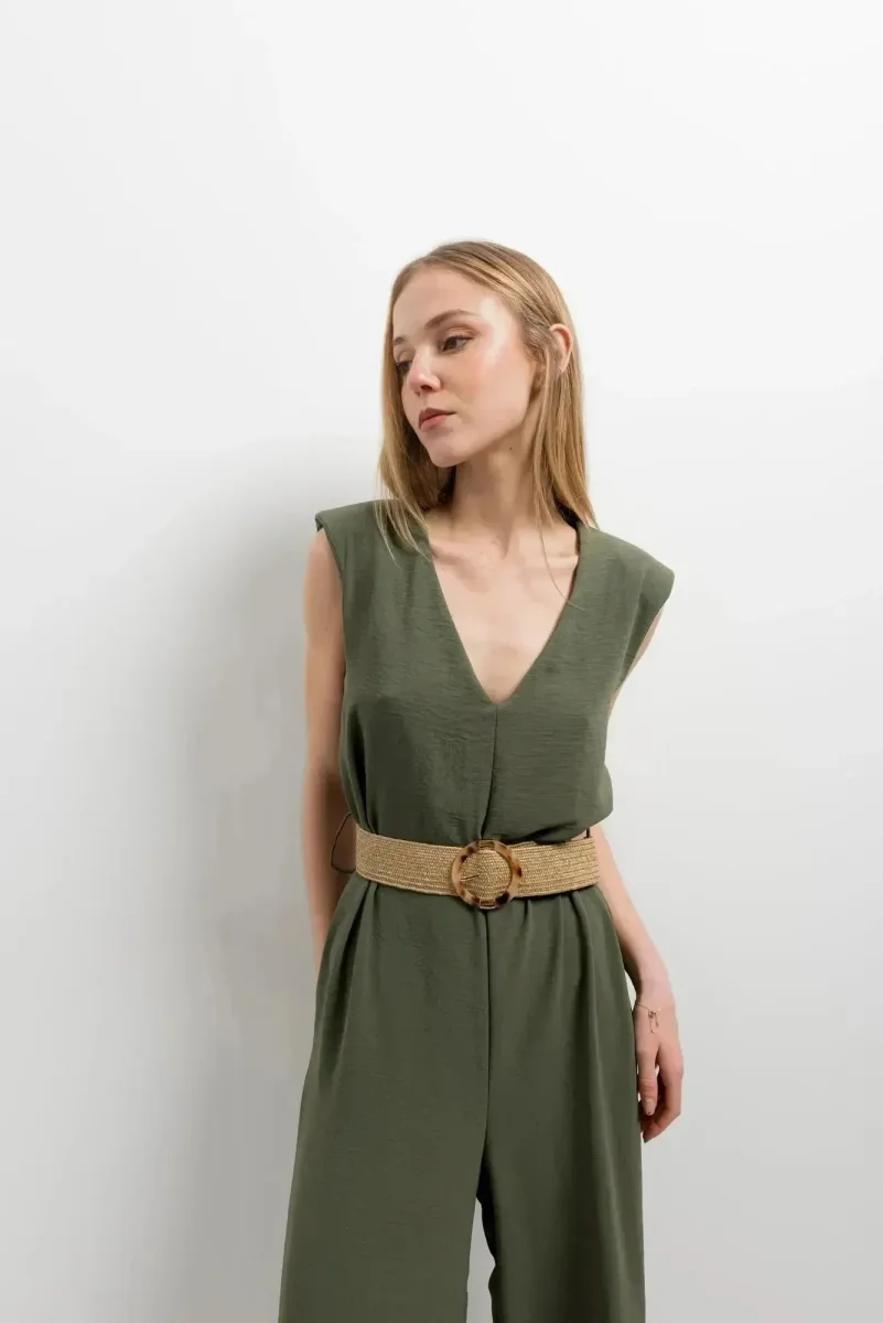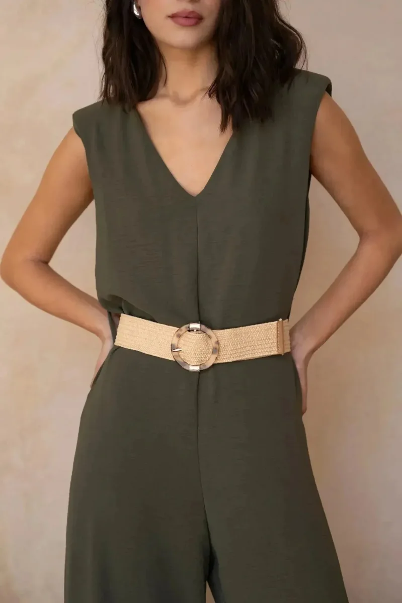 Combinaison Femme Chic Olive, Sans Manches Col V, Élégance et Confort