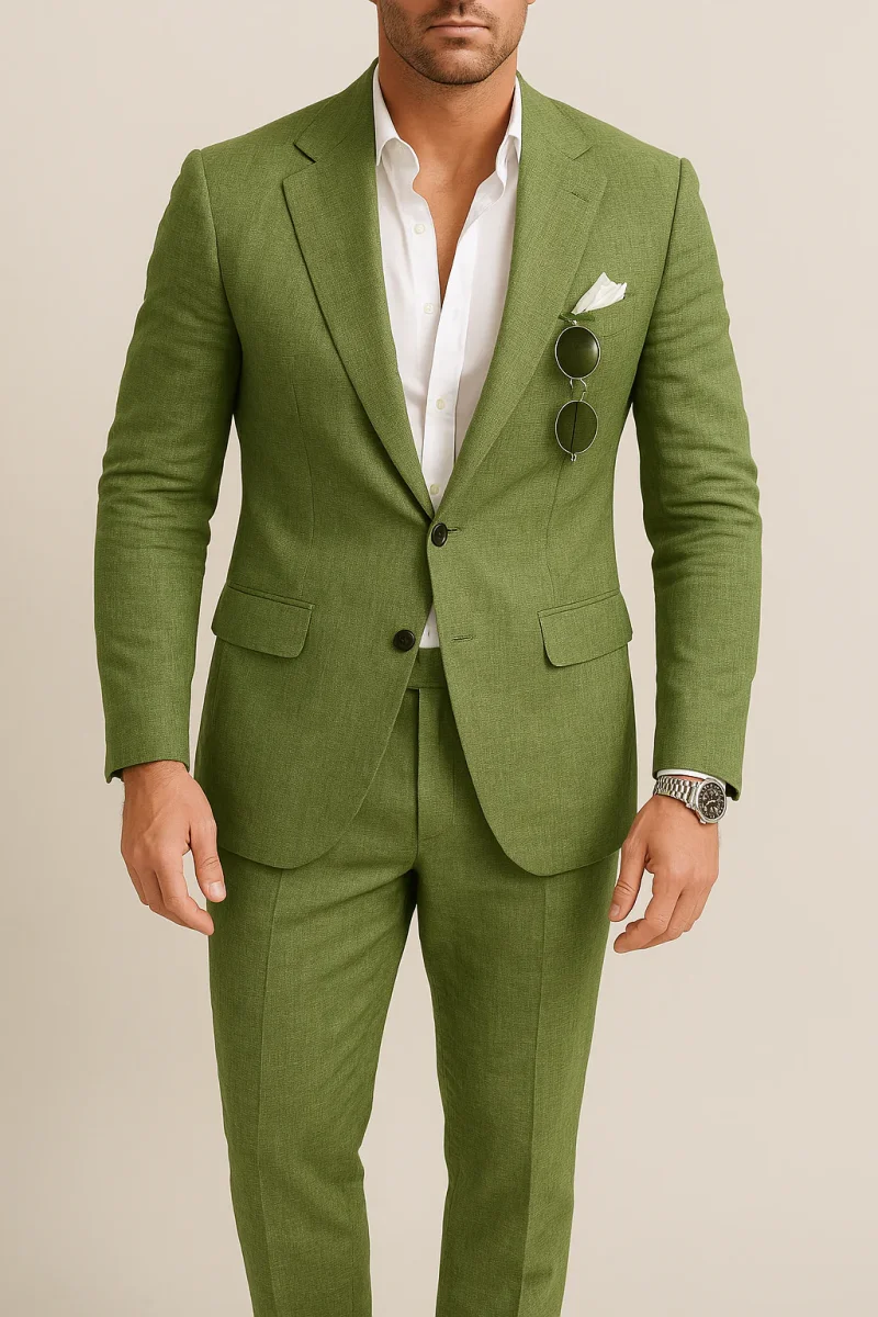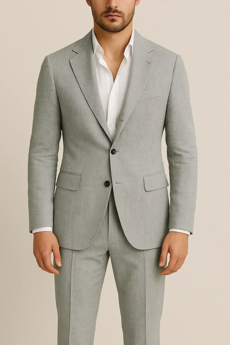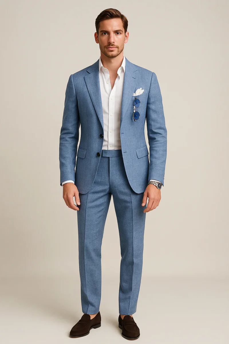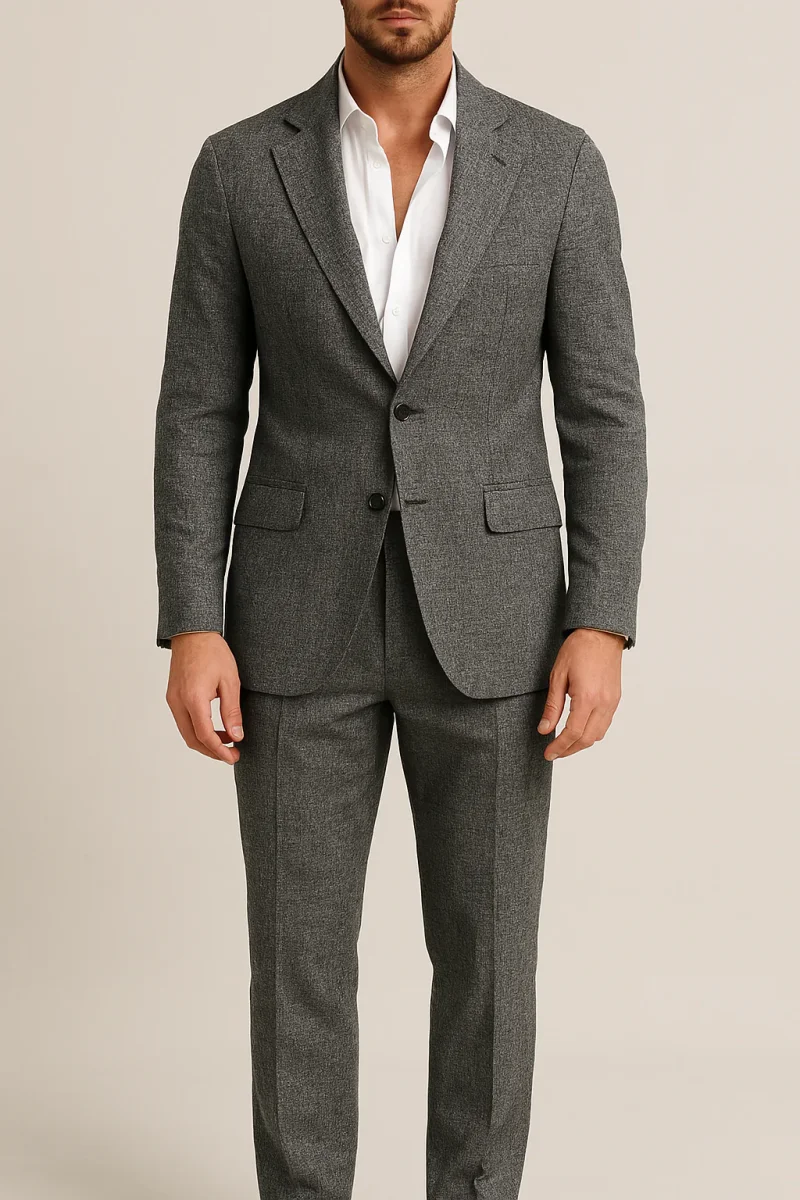 Conçu avec une élégance intemporelle et une précision sur mesure, ce costume de mariage deux pièces offre une silhouette raffinée avec une touche de modernité. Doté d’un blazer à simple boutonnage et à revers cranté et d’un pantalon coordonné, il constitue un choix judicieux pour les mariages, les rassemblements estivaux et les célébrations officielles.