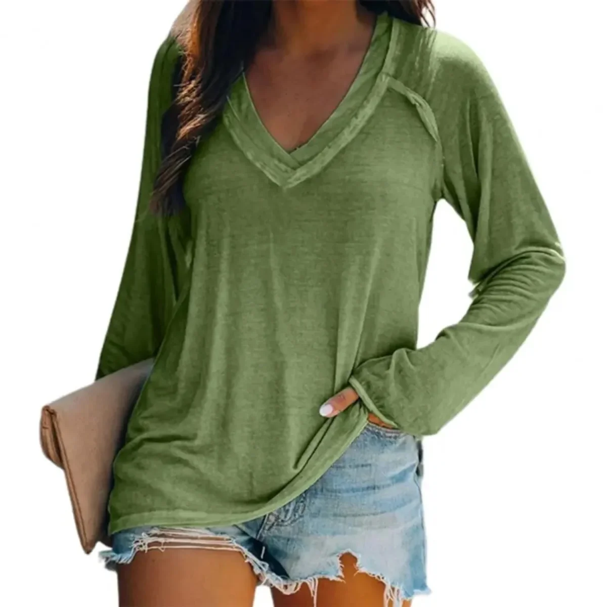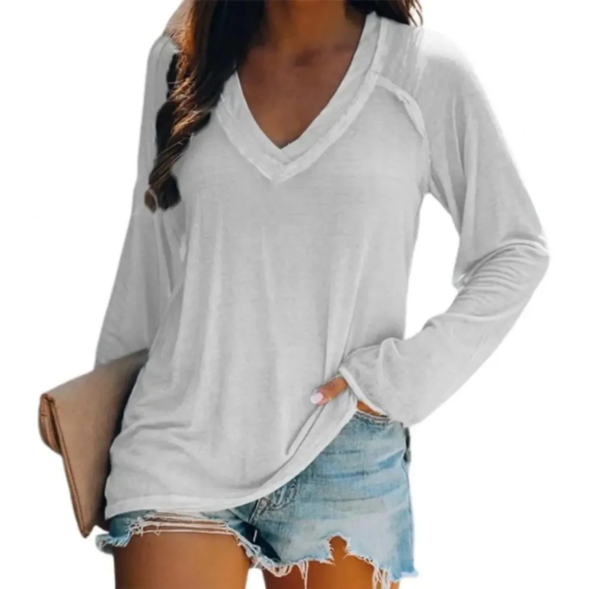 Anamae – Chemise à col en V et manches moyennes pour l’automne