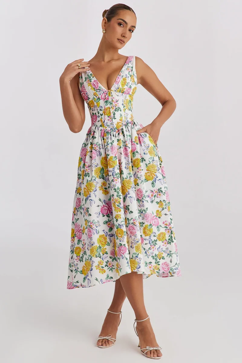 Conçue pour les journées chaudes et les sorties élégantes, cette robe est le choix parfait pour accueillir l’été avec une élégance sans effort. Le matériau léger et respirant assure un confort tout au long de la journée, tandis que la silhouette flatteuse met en valeur votre grâce naturelle. Que vous assistiez à une fête dans le jardin ou que vous fassiez une promenade au coucher du soleil, cette robe apporte une touche de charme raffiné à chaque occasion.
