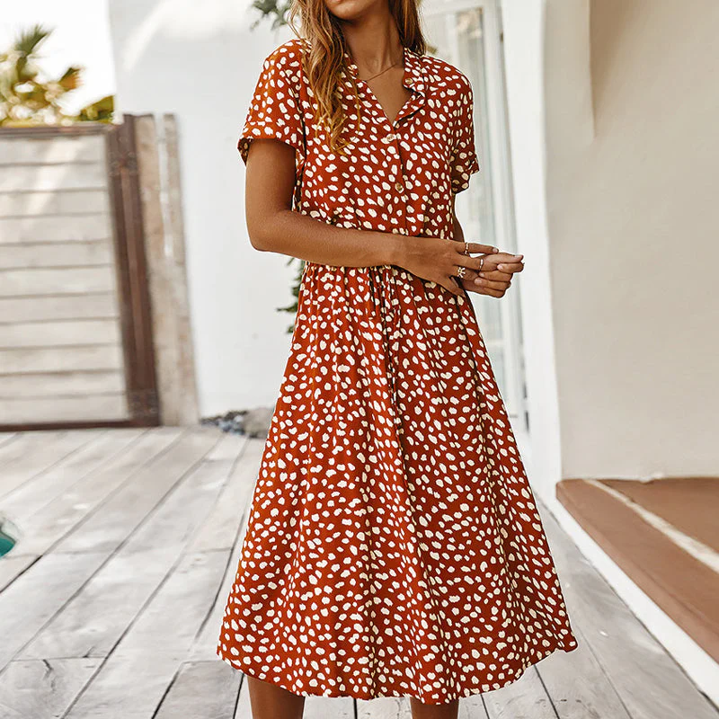 Dès que vous entrez dans la pièce, cette robe éblouissante à pois attirera toute l’attention, elle est parfaite pour être portée tous les jours. Pour mettre en valeur votre propre style, nous vous recommandons cette magnifique robe ! Cette robe confortable et élégante à col en V crée un look élégant avec son beau design et sa coupe parfaite. La robe offre un confort exceptionnel et est donc parfaite à porter tous les jours.