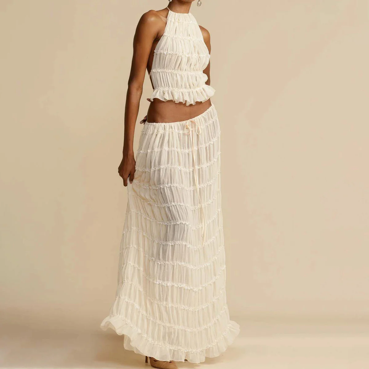 Adoptez un look estival élégant avec l’Ensemble Sexy Chic™, composé d’un haut dos nu sans manches et d’une jupe longue plissée. Léger, fluide et confortable, il est parfait pour la plage, une sortie en ville ou une soirée d’été. Sa coupe mettra votre silhouette en valeur tout en vous offrant un confort optimal pour toutes vos activités.