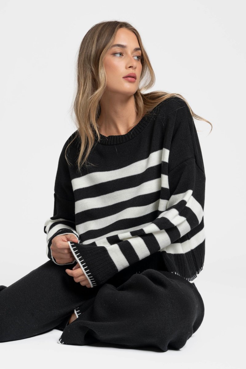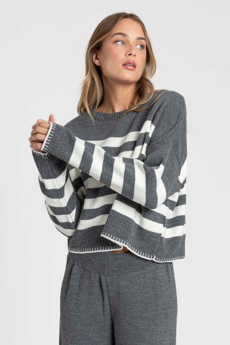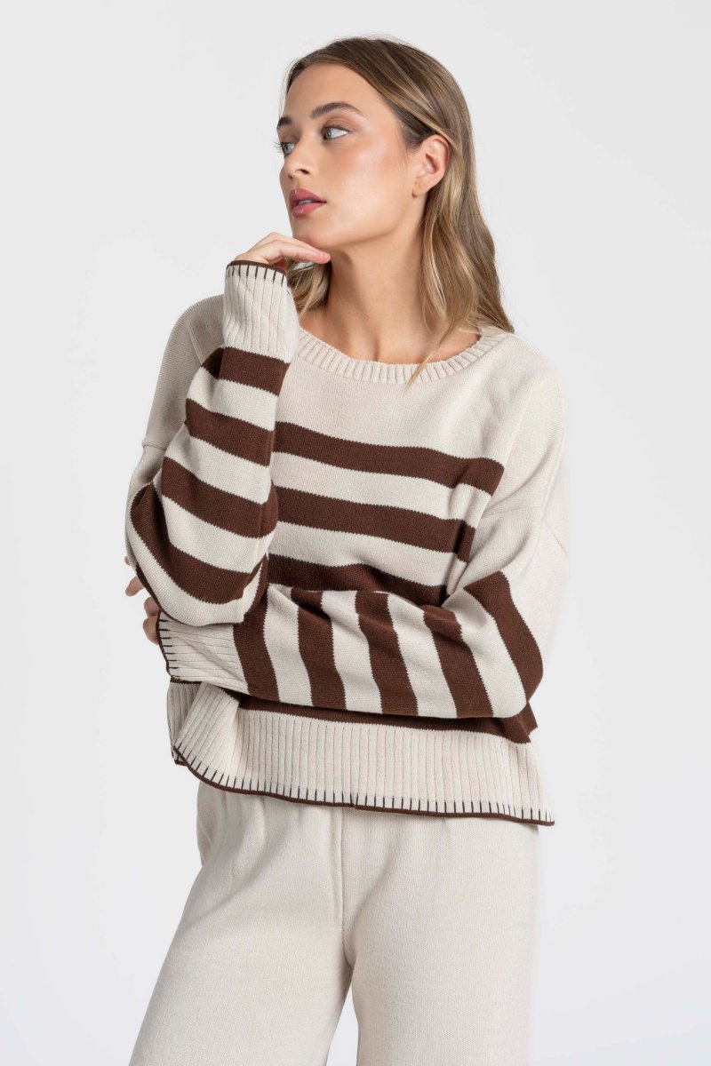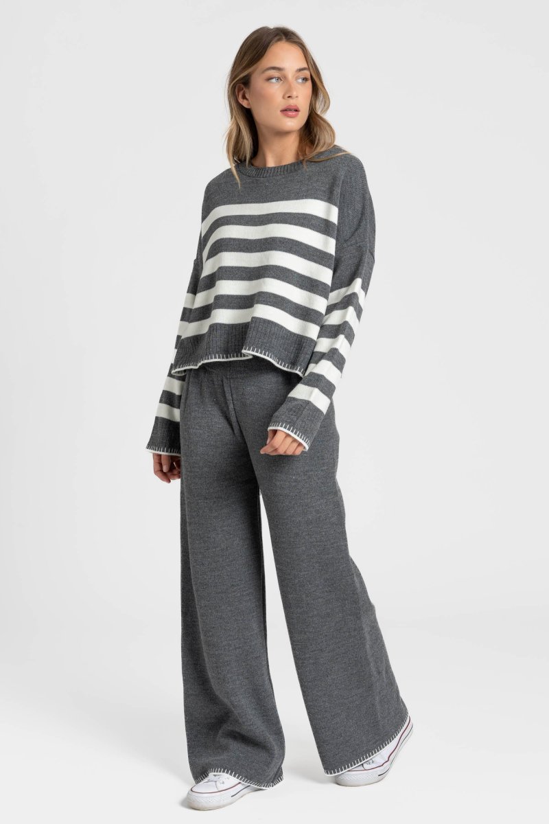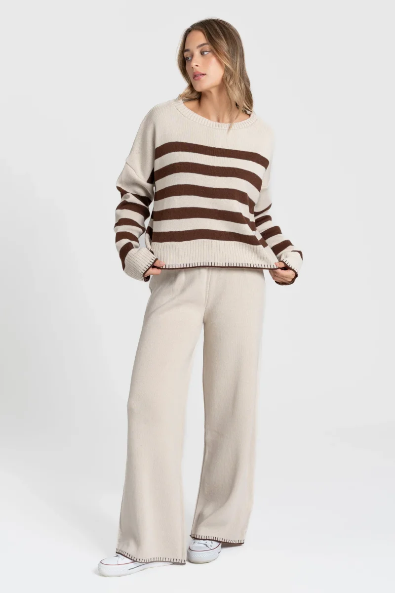 Ensemble en maille rayée femme confortable, élégant et facile à porter