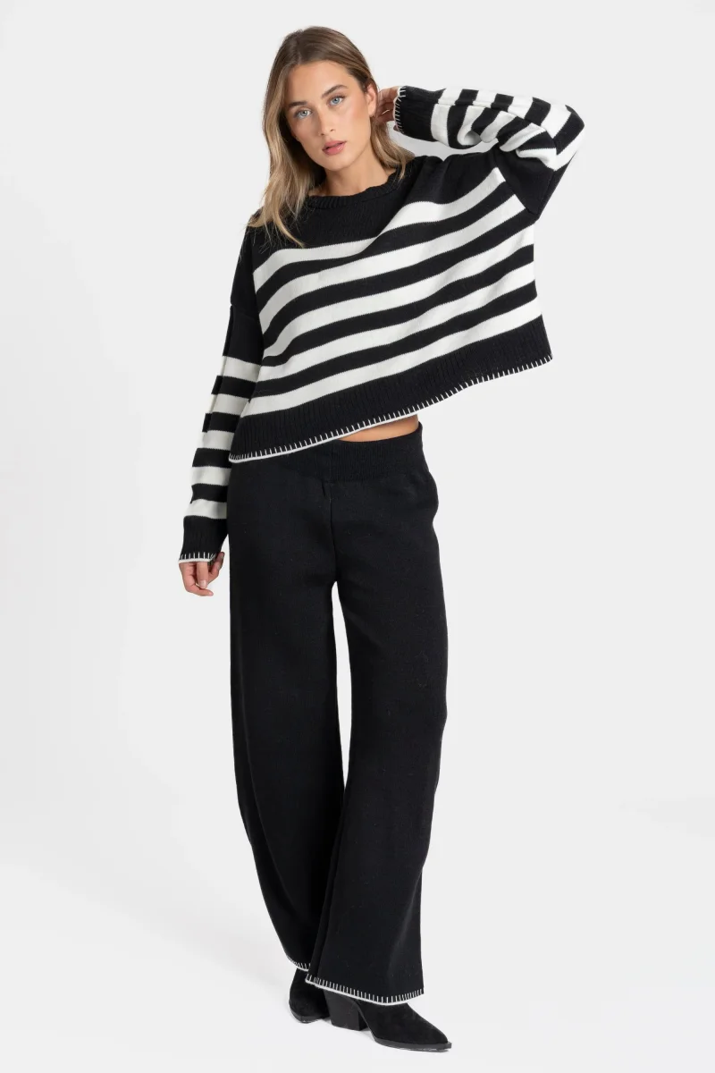 Adoptez dès maintenant cet ensemble maille rayée pour femme et composez une tenue confortable, moderne et durable, pensée pour accompagner chaque moment de votre journée.