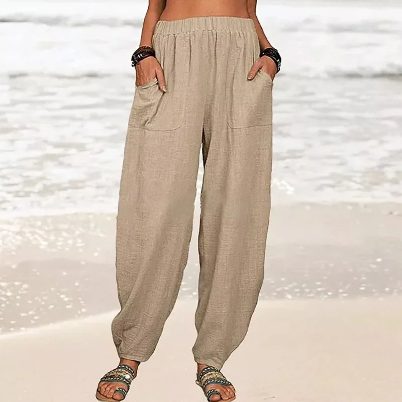 Femmes nouvelles couleur unie lâche pantalon de harem occasionnels