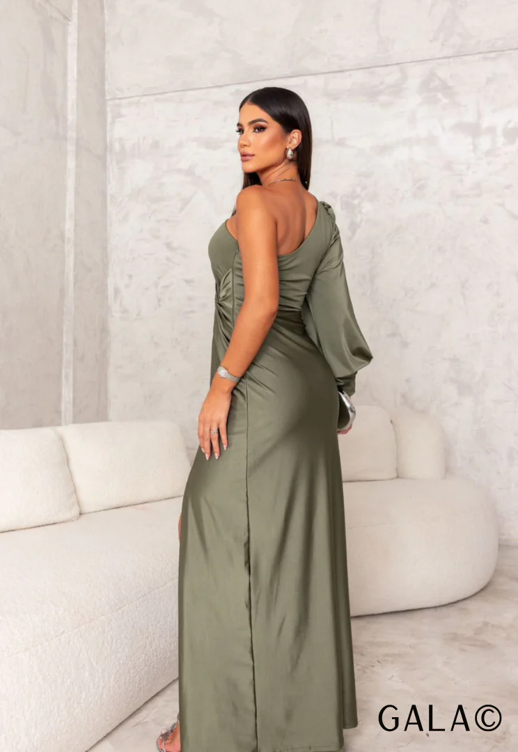 Gala – Robe plissée à manches longues à une épaule pour l’automne
