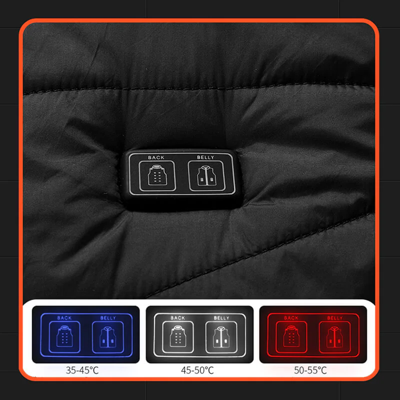 Le rembourrage en coton, plus léger et plus chaud, le tissu givré avancé le rend plus élégant. Les 13 zones de chauffage ont une zone de chauffage plus grande, avec la nouvelle technologie de chauffage, de sorte que la vitesse de chauffage est plus rapide, le temps de chauffage continu est plus long et le temps de chauffage peut être prolongé de 30 minutes à la même température.