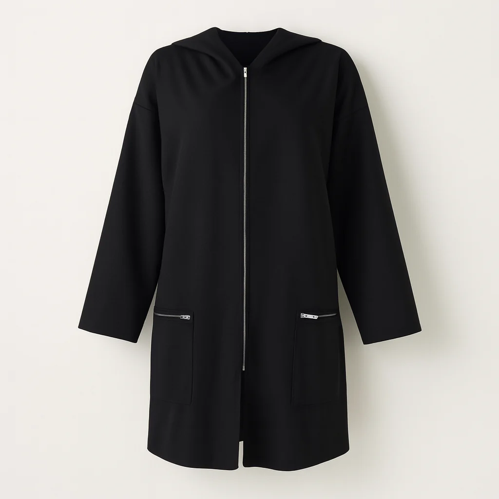 - Capuchon de style allongé – Offre une couverture supplémentaire et une touche sportive.