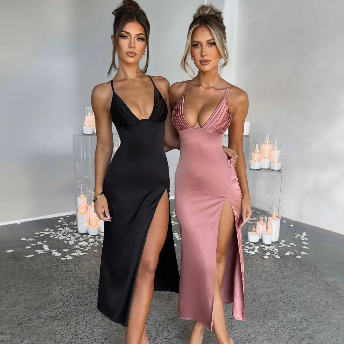 Son tissu doux et luxueux tombe avec grâce, enveloppant la silhouette d’une légèreté flatteuse.