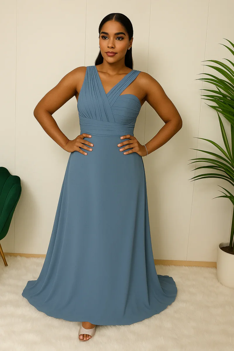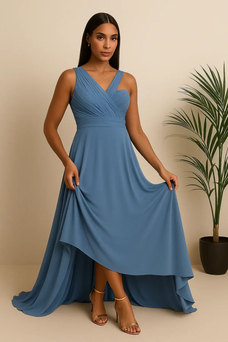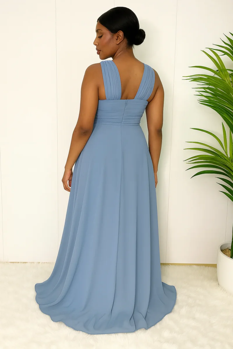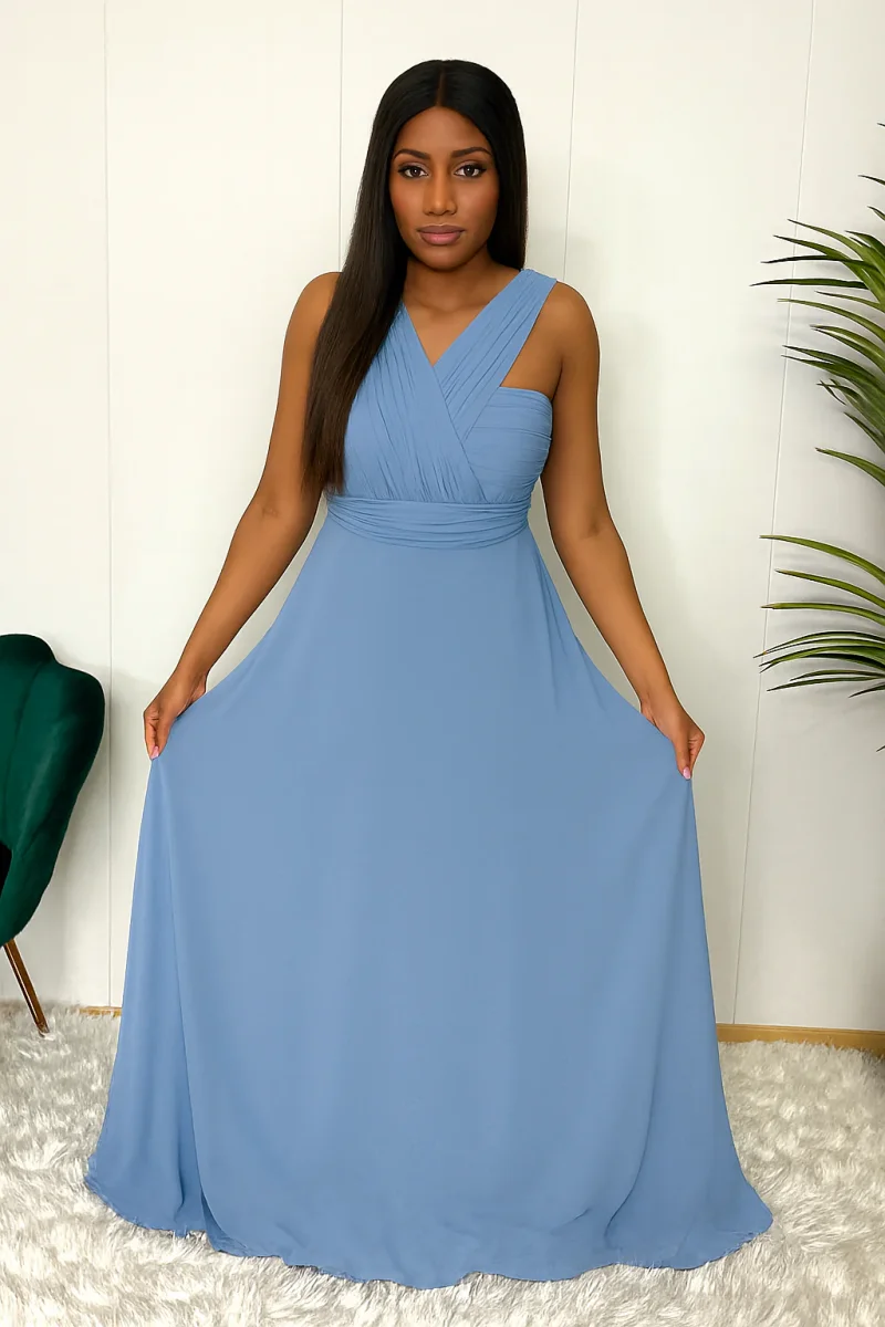 Hafsoit Mode – Robe longue fluide de soirée en bleu poussière – Elégante, classe et moderne