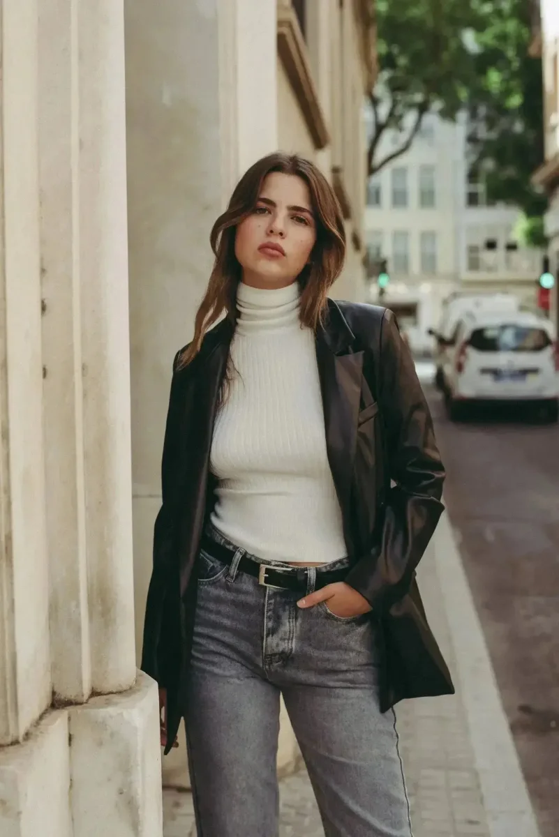 Pour un look chic, associez ce jean femme taille haute droit avec une blouse élégante et des talons. Si vous préférez un style plus décontracté, un t-shirt basique et des baskets feront parfaitement l’affaire. N’hésitez pas à accessoiriser avec des bijoux voyants ou un sac tendance pour une touche personnelle. Vous pouvez également superposer un blazer pour un look professionnel sublime.