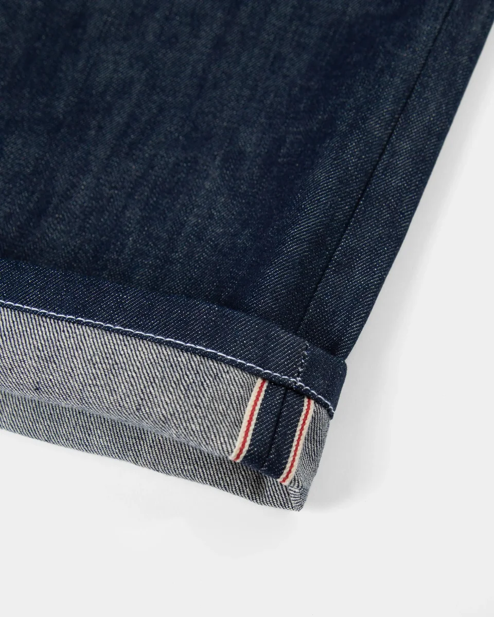 100% coton, fabriqué au Portugal sur machine traditionnelles. Tissage serré, plus lourd et résistant que du denim classique, avec liseré rouge emblématique selvedge. Un jean qui gagne en caractère avec le temps.