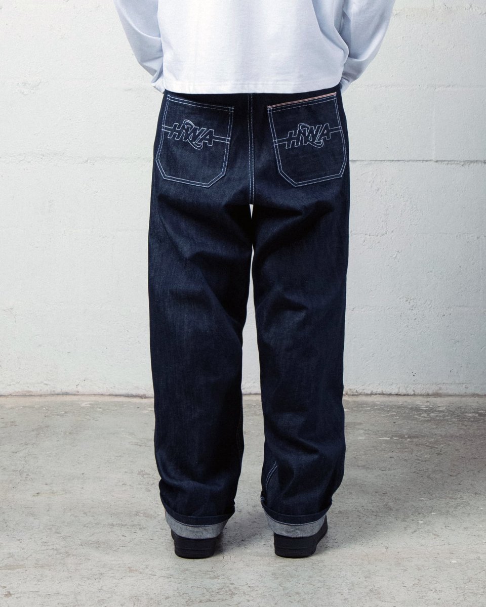 Notre célèbre jeans baggy, version selvedge premium. 100% coton, fabriqué au Portugal sur machine traditionnelles. Tissage serré, plus lourd et résistant que du denim classique, avec liseré rouge emblématique selvedge. Un jean qui gagne en caractère avec le temps. Jean brut coupe baggy. Logo brodé sur les poches arrière. Liseré selvedge apparent sur plusieurs zones […]