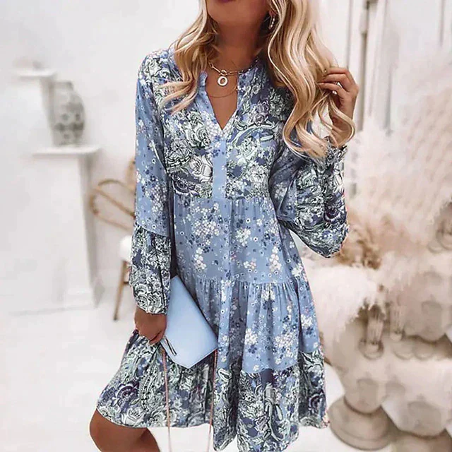 Cette robe droite crée une silhouette flatteuse qui tombe au-dessus du genou. Avec ses manches longues et son imprimé floral simple mais attrayant, elle apporte une touche subtile de charme féminin. Les détails froissés ajoutent de la profondeur et de la texture, soulignant l’élégance de la robe.