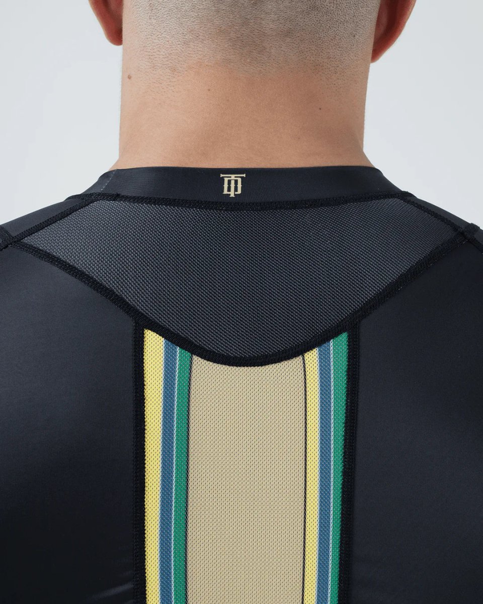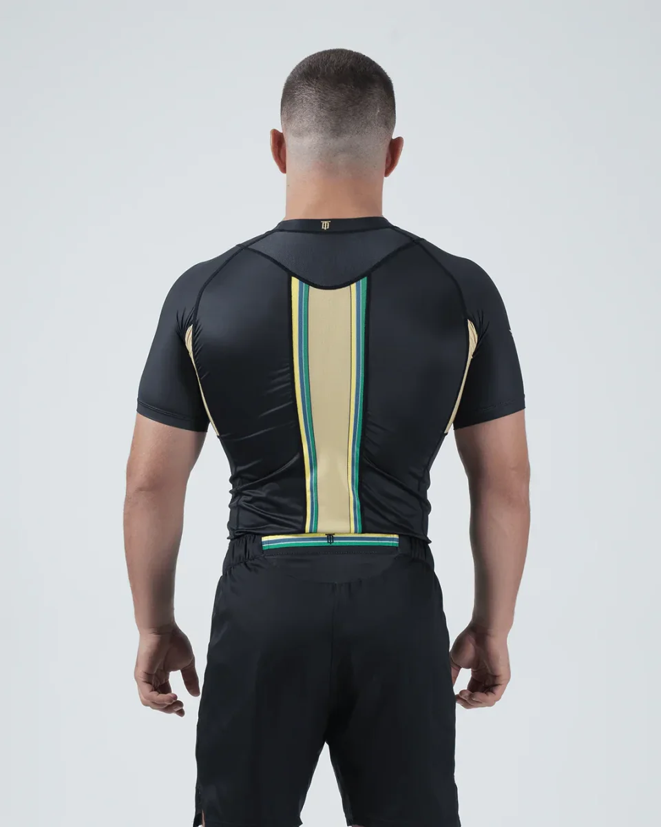 Inspirada en el icónico Lotus John Player Special de Ayrton Senna, la rash guard Tainan Dalpra Signature de edición limitada combina la estética del automovilismo con un rendimiento de primera clase en jiu-jitsu. Diseñada en colaboración con el tricampeón mundial Tainan Dalpra, esta prenda ofrece un elegante look en negro y dorado, ventilación estratégica y durabilidad lista para la competición.
