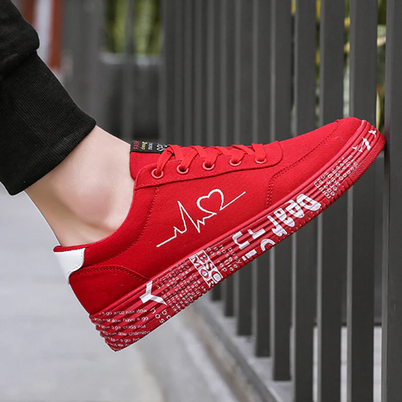 Sneakers à lacets unisexes au design romantique – style casual pour les amoureux du confort.