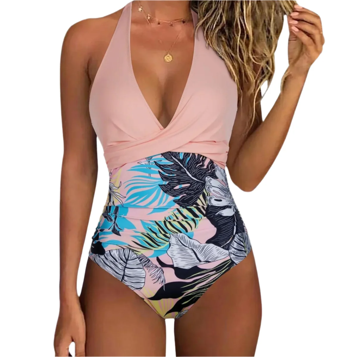 Ce maillot de bain présente un décolleté en V structuré et des bonnets légèrement profilés qui définissent subtilement le haut du corps. La silhouette suit le torse avec des lignes de panneaux lisses et un léger empiècement à la taille. De larges bretelles assurent le maintien et laissent le dos ouvert pour une forme équilibrée. Conçu pour les moments au bord de la piscine, les journées à la plage ou les séances de natation décontractées.