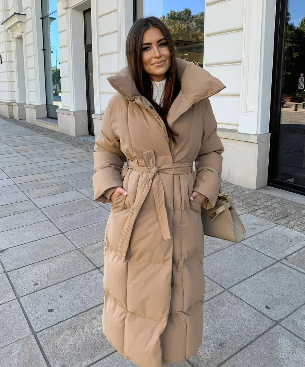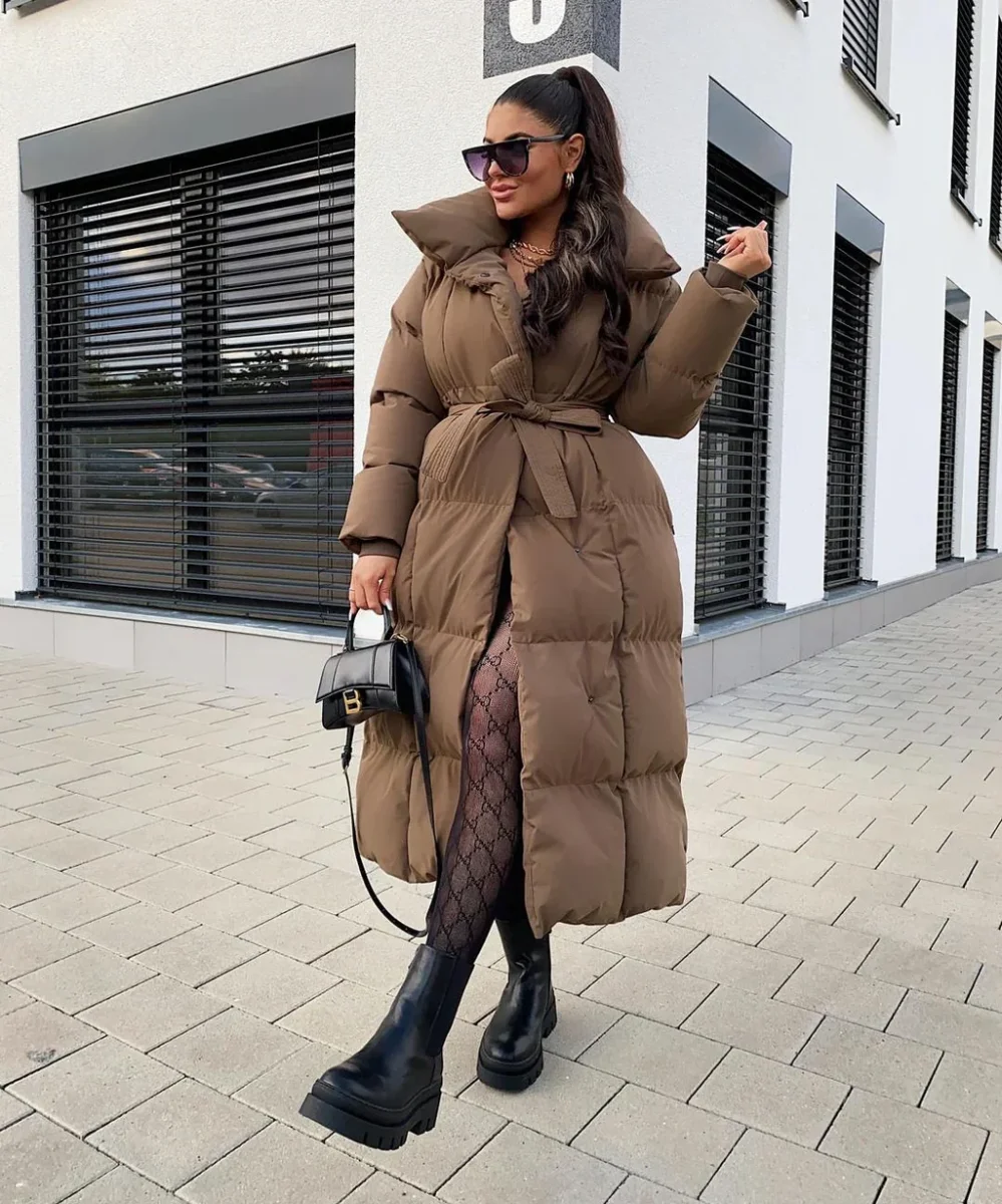Le manteau Mellody est conçu pour allier sophistication et confort. Sa silhouette longue et ajustée, complétée par une élégante ceinture, met en valeur la silhouette tout en offrant une excellente protection contre le froid. Fabriqué à partir de matériaux de haute qualité, il assure chaleur et durabilité tout au long de l’hiver. Idéal pour les occasions formelles comme pour les sorties quotidiennes, ce manteau est un must pour celles qui apprécient l’élégance sans compromis.