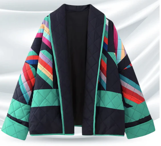 Vous souhaitez avoir un look radieux et élégant sans effort ? Alors cette Veste vintage aux détails imprimés et à la coupe Kimono est le choix parfait ! Cette veste en coton imprimé d’automne et d’hiver est un choix à la mode avec un col en V chaud, des manches longues et une coupe ample décontractée – un ajout élégant et confortable à votre garde-robe.