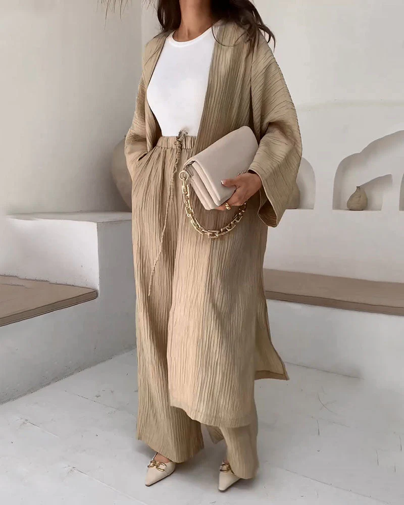 Avec son style simple et uni et sa coupe confortable, cet ensemble est parfait pour la transition vers les temps plus chauds.