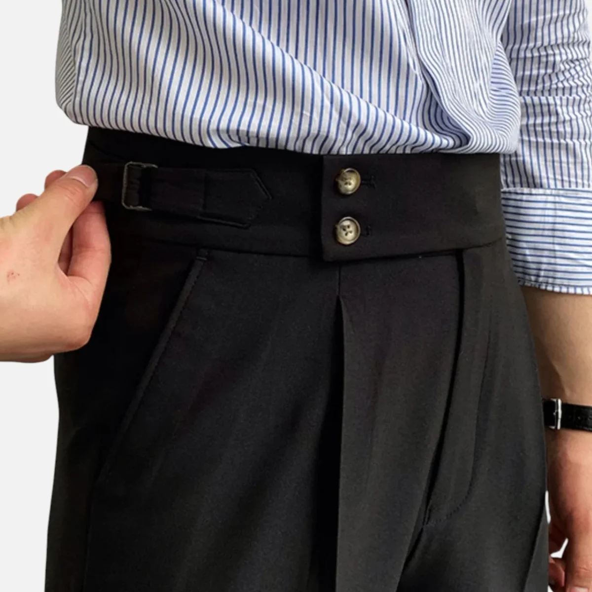 Le pantalon drapé taille haute pour homme allie l’élégance classique à une allure contemporaine. Conçu pour les hommes qui apprécient les silhouettes raffinées et une sophistication naturelle, ce pantalon offre une base impeccable pour des tenues professionnelles ou décontractées chics.