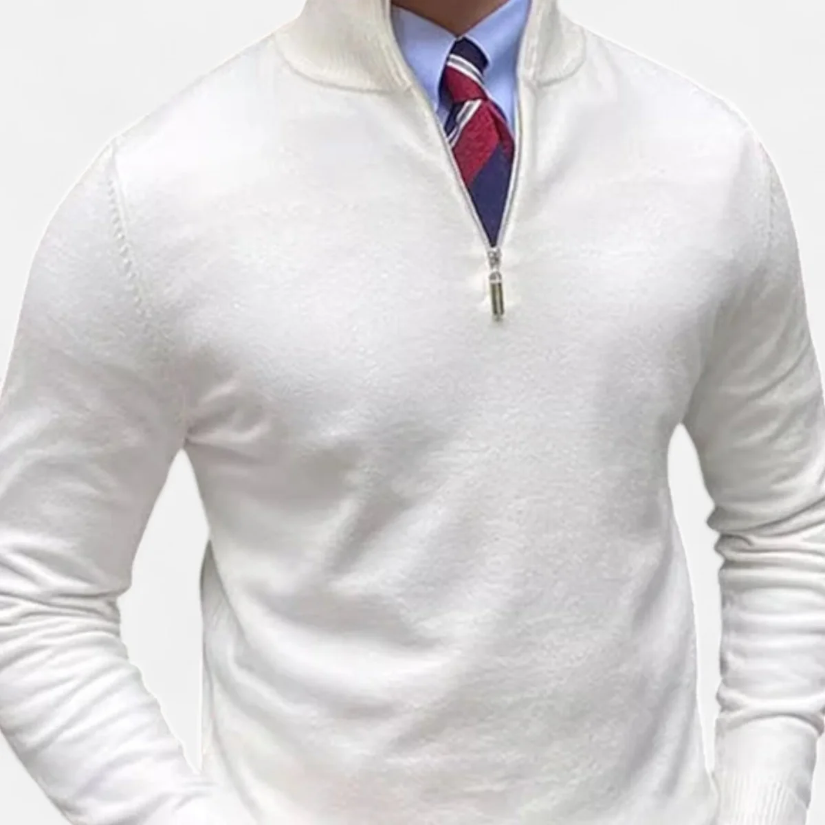 - Col zippé à mi-hauteur : Le zip ajustable apporte une touche moderne et fonctionnelle tout en sublimant la pureté du design.