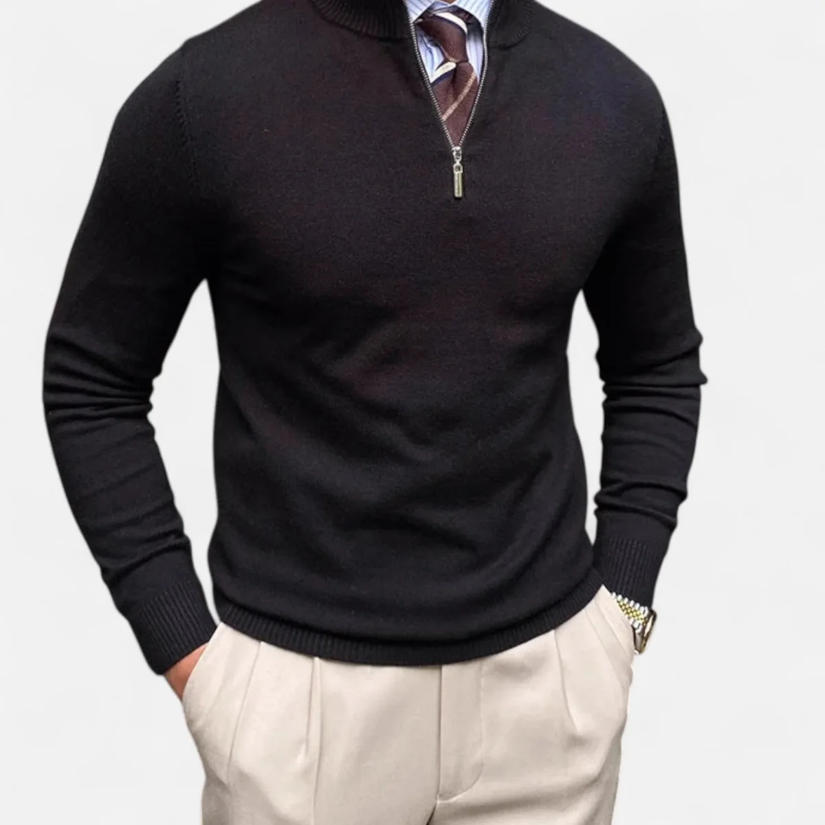 Ce pull zippé à demi-hauteur pour homme offre une allure raffinée et élégante, idéale pour la mi-saison. Sa coupe épurée s’accorde avec toutes les tenues, du quotidien aux looks décontractés chics, en passant par les tenues de bureau décontractées. Conçu pour le confort et la polyvalence, il se prête aussi bien à un style décontracté qu’à une allure plus sophistiquée.