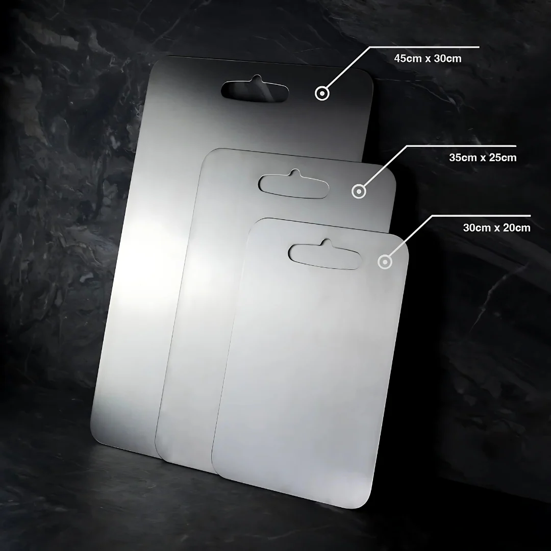 PureBoard est plus qu’une simple planche à découper – c’est un investissement pour votre santé et la sécurité de votre cuisine. Avec sa surface robuste en titane et son design moderne et non toxique, c’est la solution idéale pour tous ceux qui se soucient d’une cuisine propre et responsable. Pas de pliage, pas de cassure, pas de risque. Rendez votre cuisine plus saine – avec PureBoard, la planche à découper innovante pour un usage quotidien.