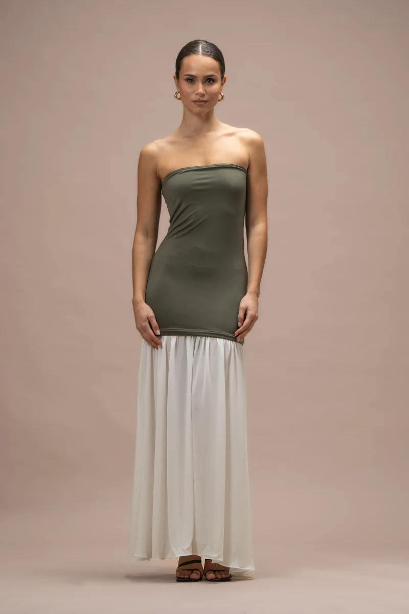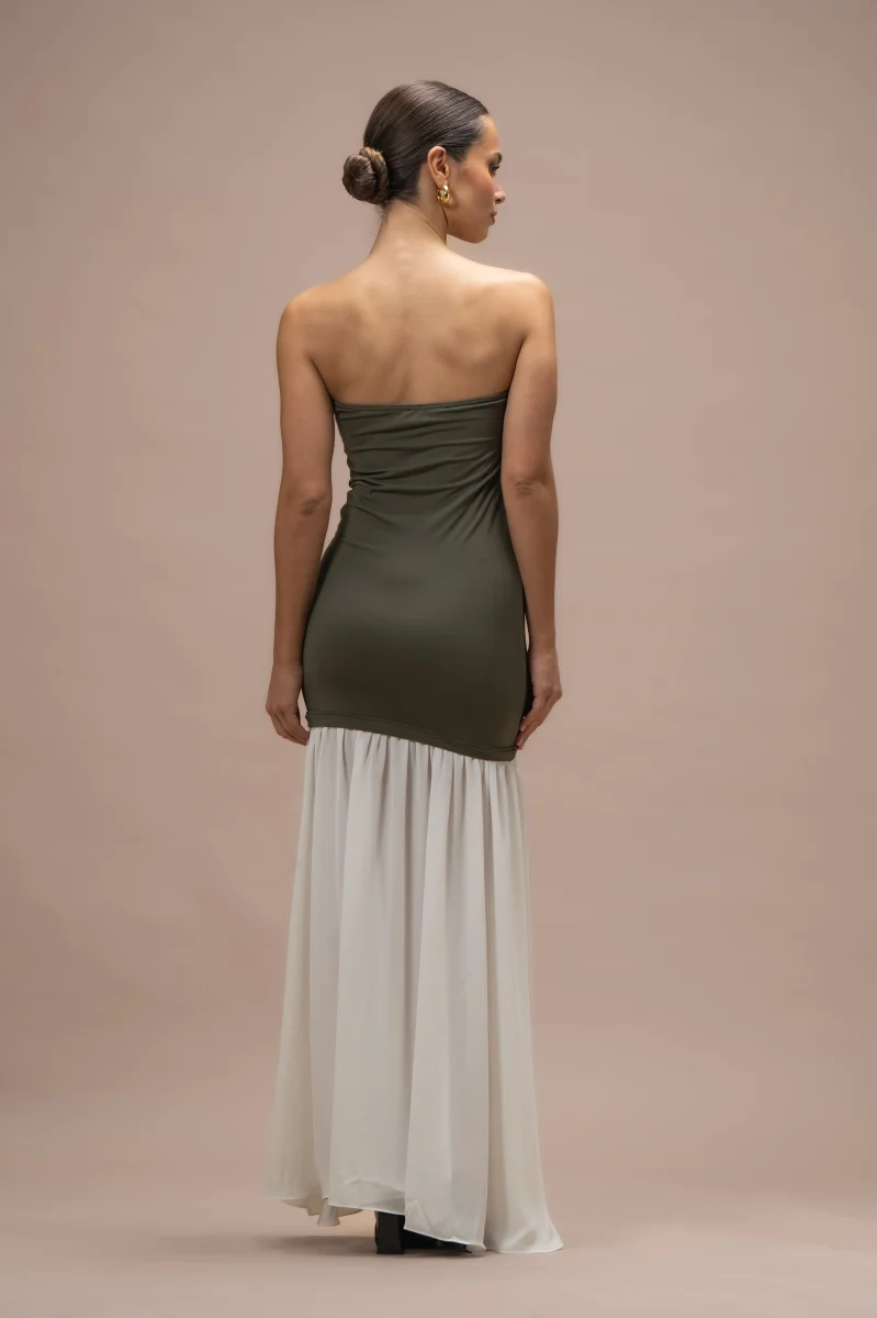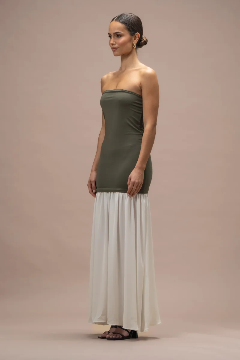 Robe Angie bi-matières kaki