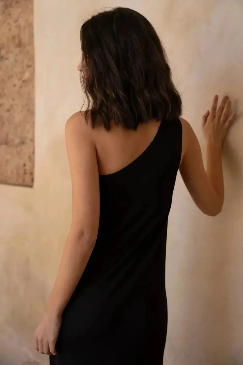 Confectionnée avec un tissu de première qualité, notre robe asymétrique noir s’ajuste avec délicatesse à votre silhouette. Sa coupe asymétrique et son col élégant mettent en avant vos atouts tout en laissant entrevoir subtilement vos épaules. Avec cette robe, vous aurez l’assurance d’être au centre de toutes les attentions.