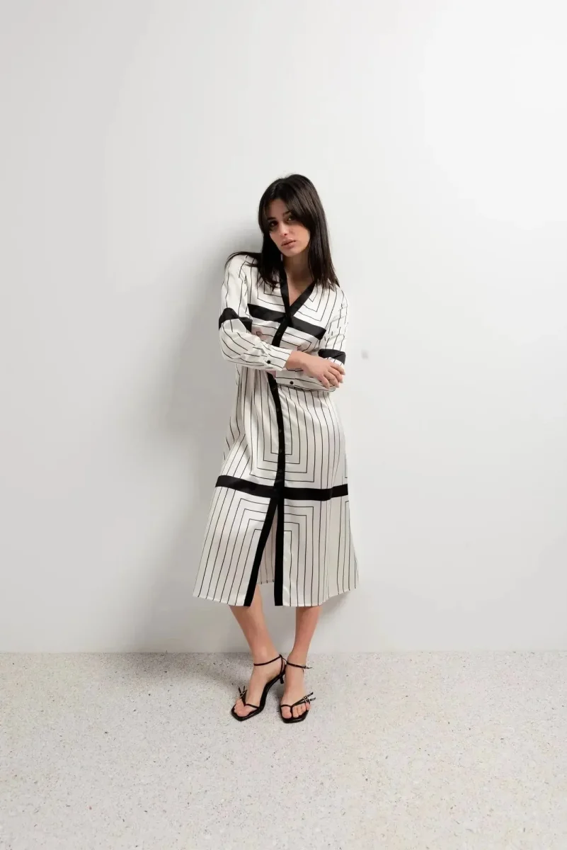 Robe Chemise Longue Chic À Rayures Noires Et Blanches Pour Un Look Élégant Et Confortable
