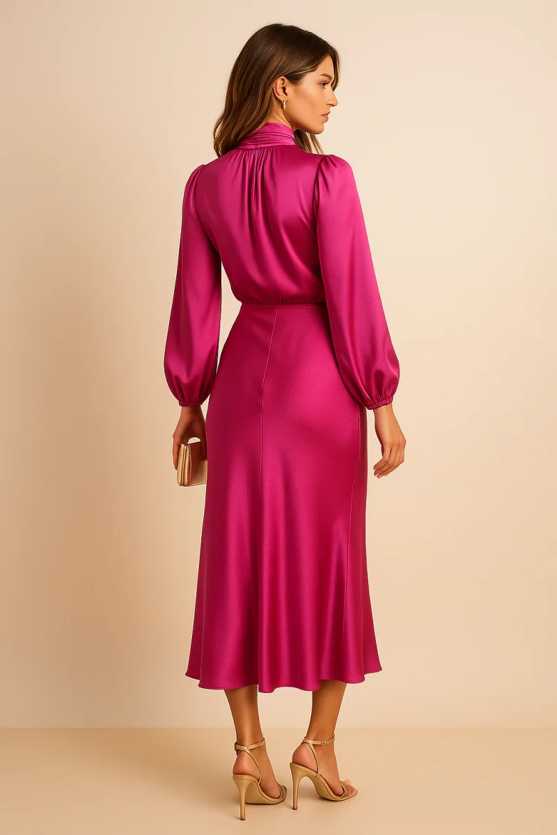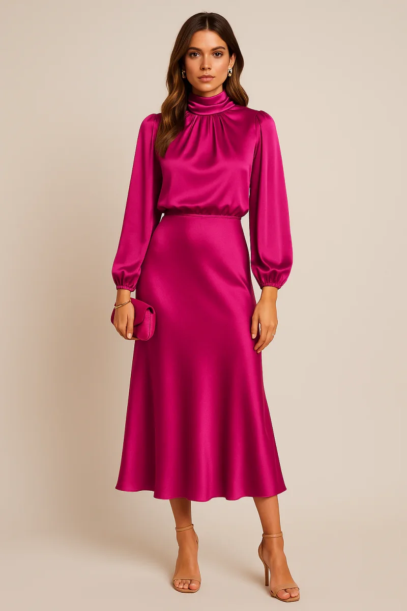 Cette élégante robe midi à col montant apporte une touche sophistiquée et gracieuse aux tenues d’hiver. Idéale au quotidien, pour les occasions spéciales et pour un look soigné durant les mois les plus froids. Sa silhouette fluide et harmonieuse crée un style équilibré, à la fois naturel et élégant, pour toutes les occasions.