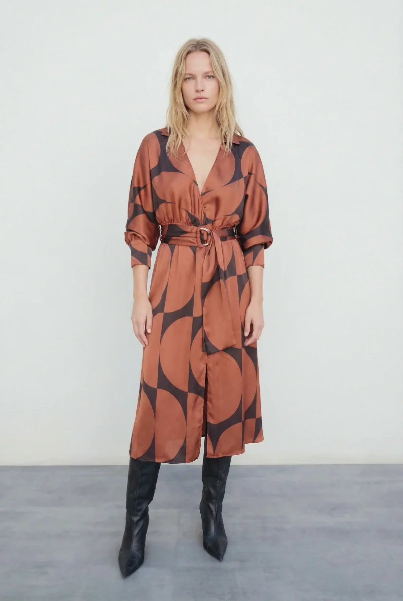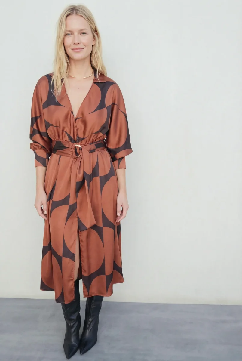 Découvrez notre robe portefeuille femme à imprimé géométrique