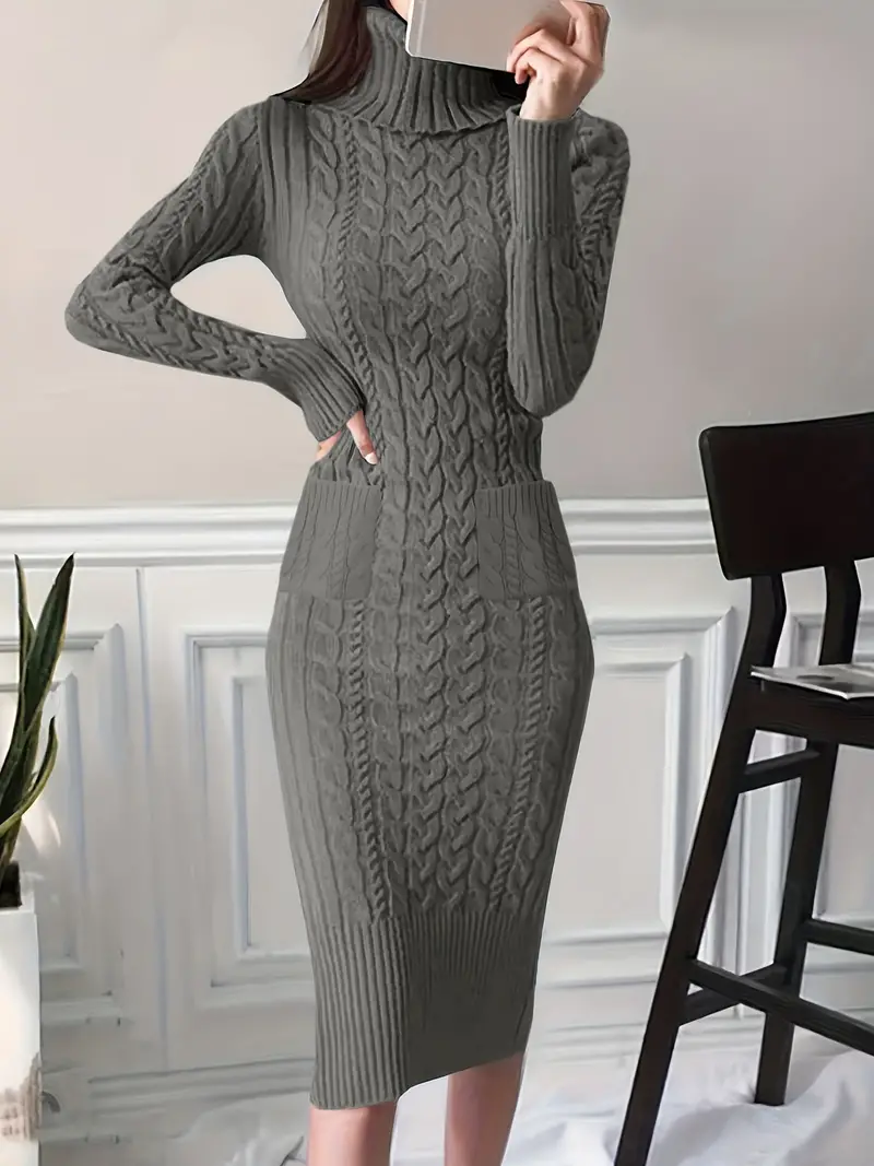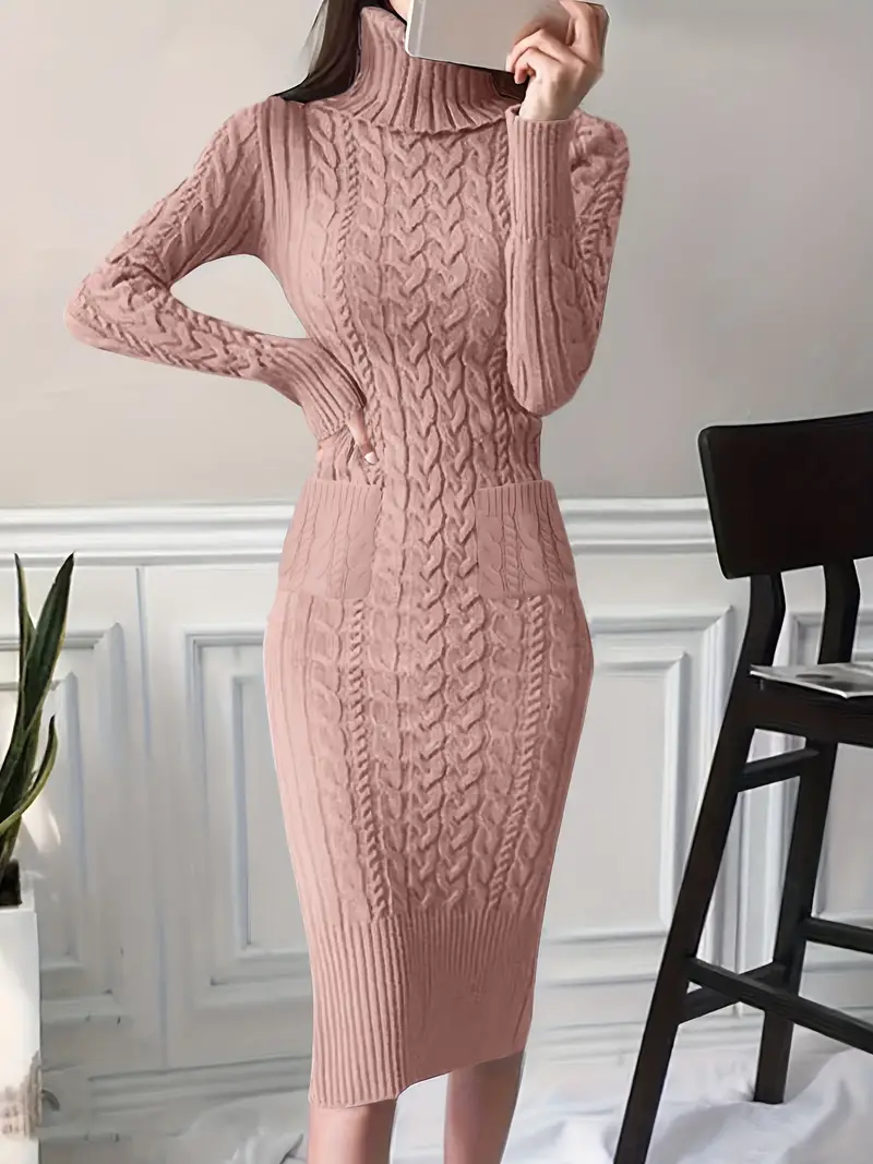 Robe pull élégante en tricot de câble pour l’automne avec deux poches
